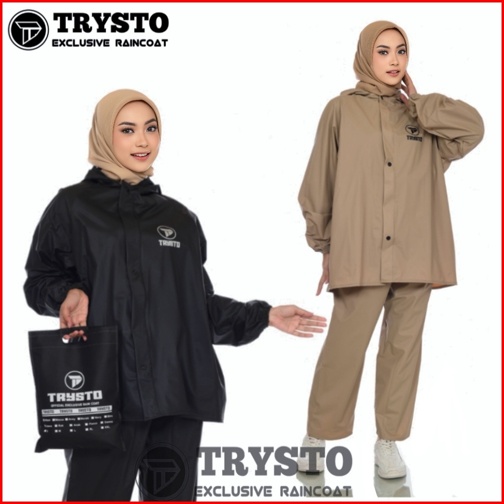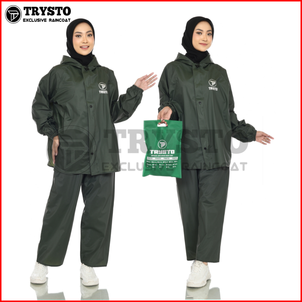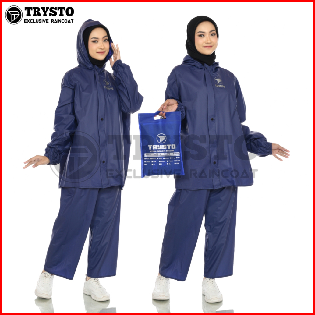 Jas Hujan Raincoat Pria Wanita Terbaik Original By Trysto Bahan Pvc 025 Tebal Anti Rembes