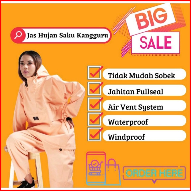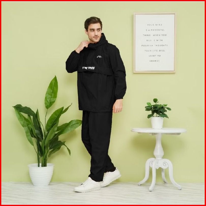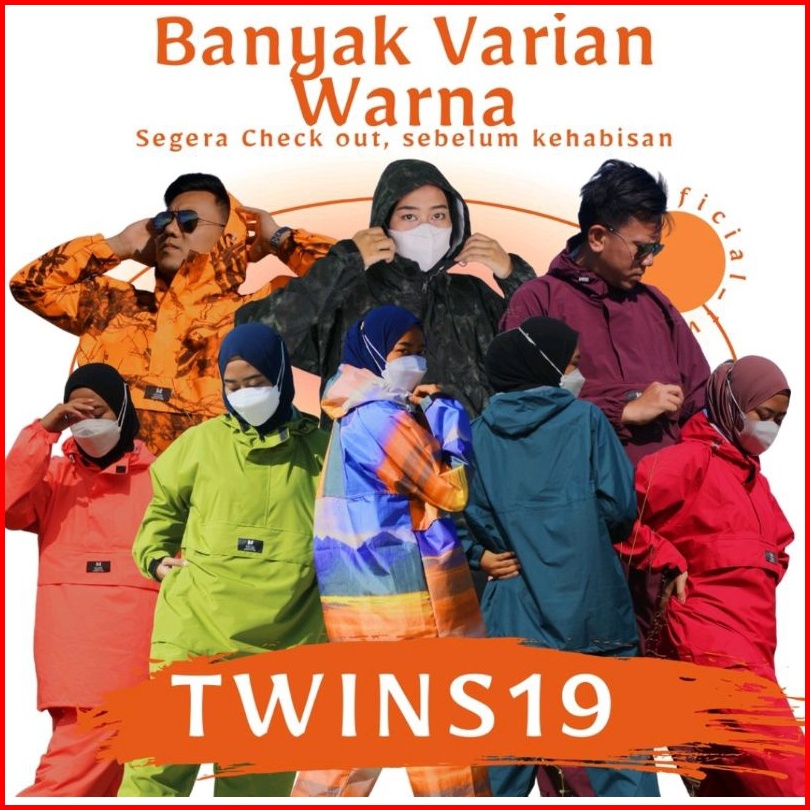Jas Hujan Saku Kangguru Pria Wanita Dewasa Anti Air Raincoat Waterproof Twins Nineteen