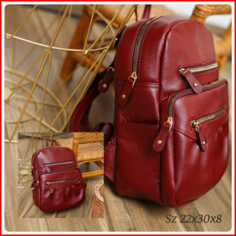 Bion Leather Bnr006 Ransel Kulit Wanita Kulit Sapi Asli Garut Slot Laptop