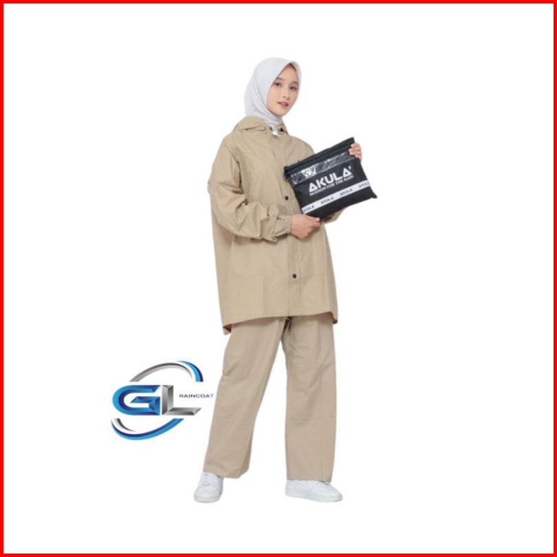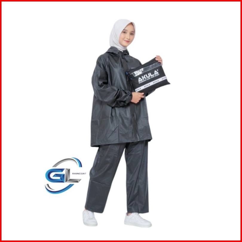 Jas Hujan Pria Wanita Bahan Tebal Kuat Elastis Anti Rembes Akula Hitam