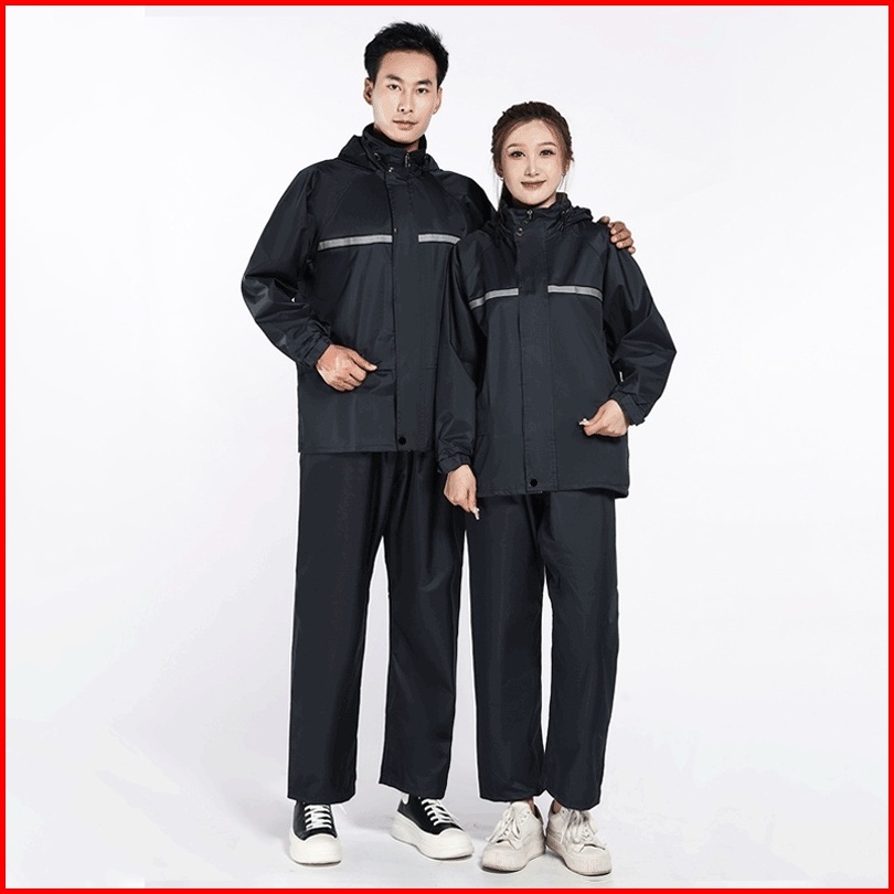 Tianmalls Jas Hujan Pria Dan Wanita Tebal Anti Angin Oxford Cloth Rain Coats Black Yy