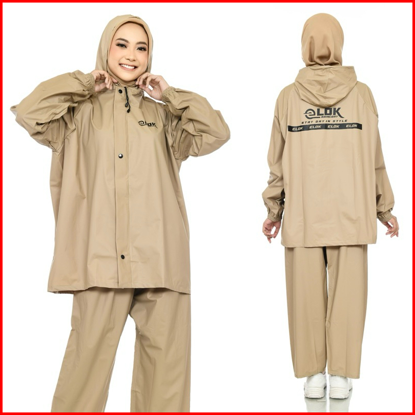 Jas Hujan Raincoat Setelan Dewasa Terbaik Pria Wanita By Elok Bahan Tebal Elastis Anti Rembess Mocca