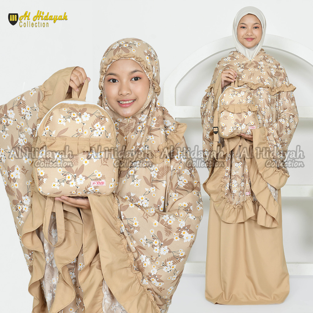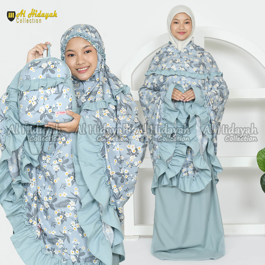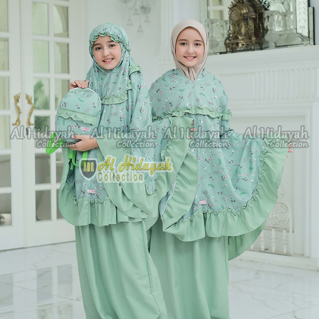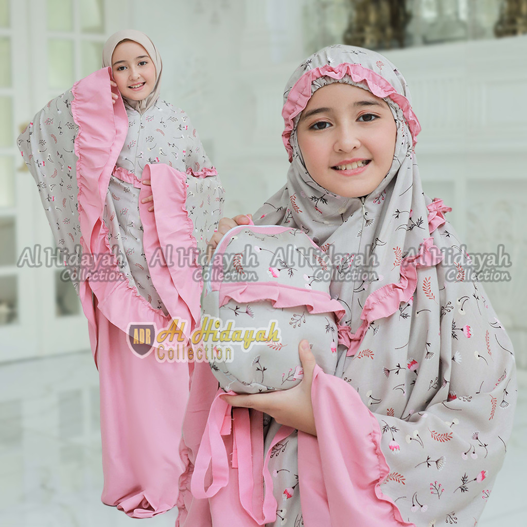 Mukena Anak Tas Ransel Resleting Dagu Rayon Premium Motif Mukenah 2 in 1 TK SD Tanggung 3 4 5 6 7 8 9 10 11 12 13 14 15 Tahun