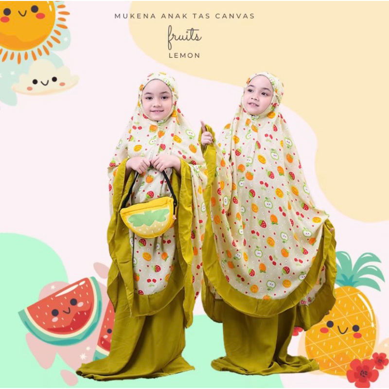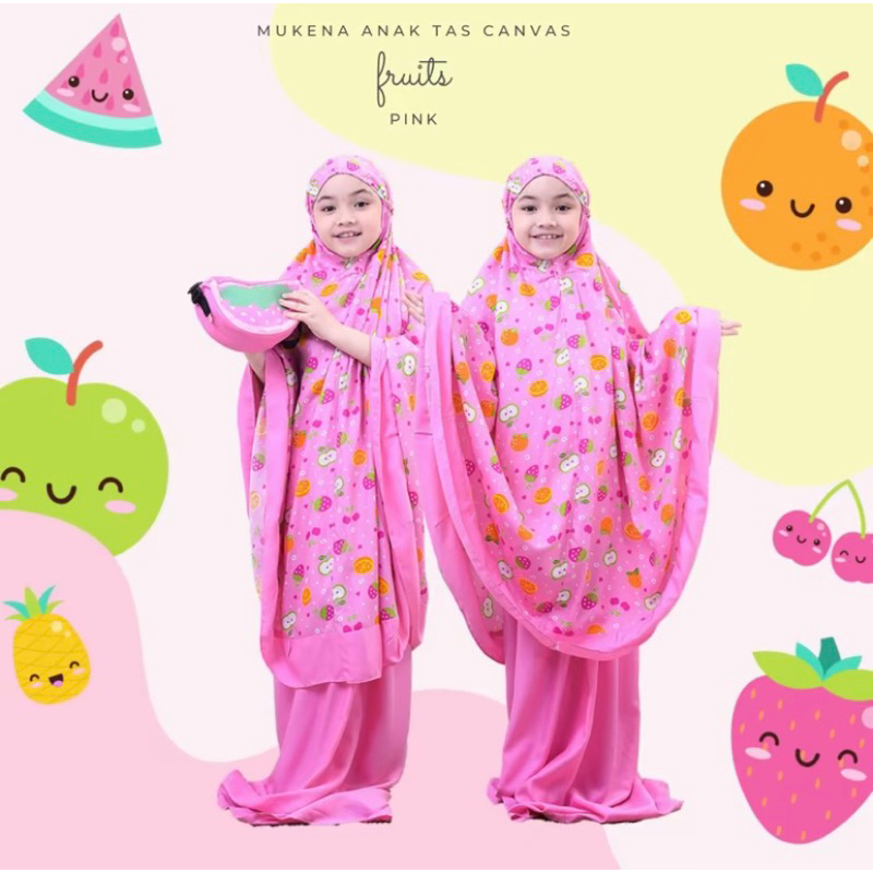 Mukenah Anak Motif Fruits / Mukenah Anak SD / Mukenah Anak Tanggung Motif Lucu Terbaru