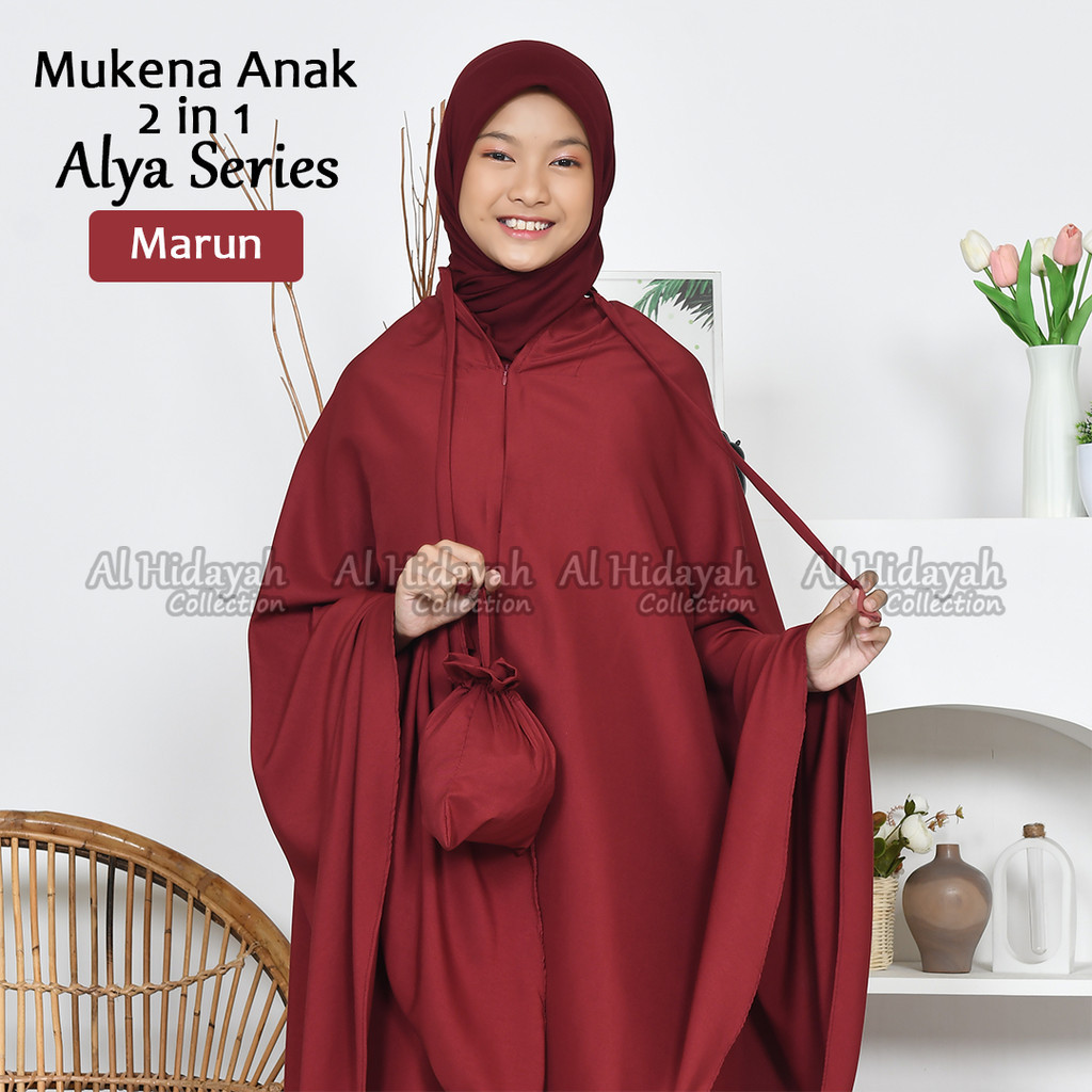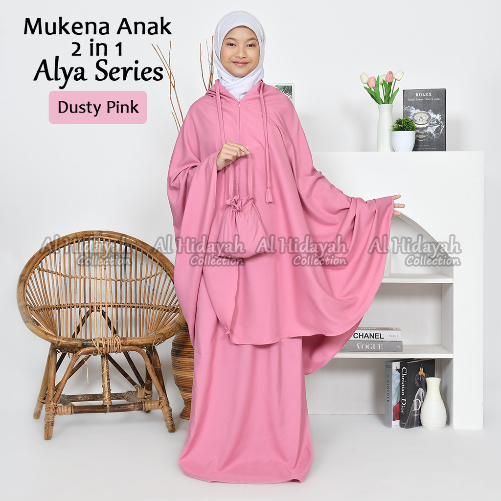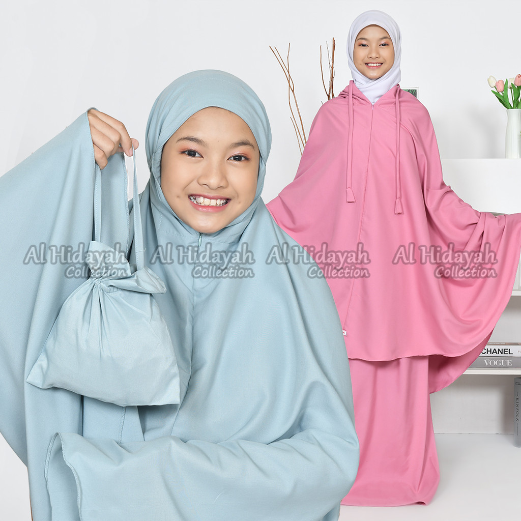 Mukena Anak Traveling 2 in 1 Resleting Dagu Katun Premium Polos SD SMP Remaja Mukenah Tanggung 7 s/d 15 Tahun
