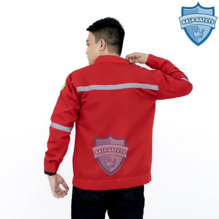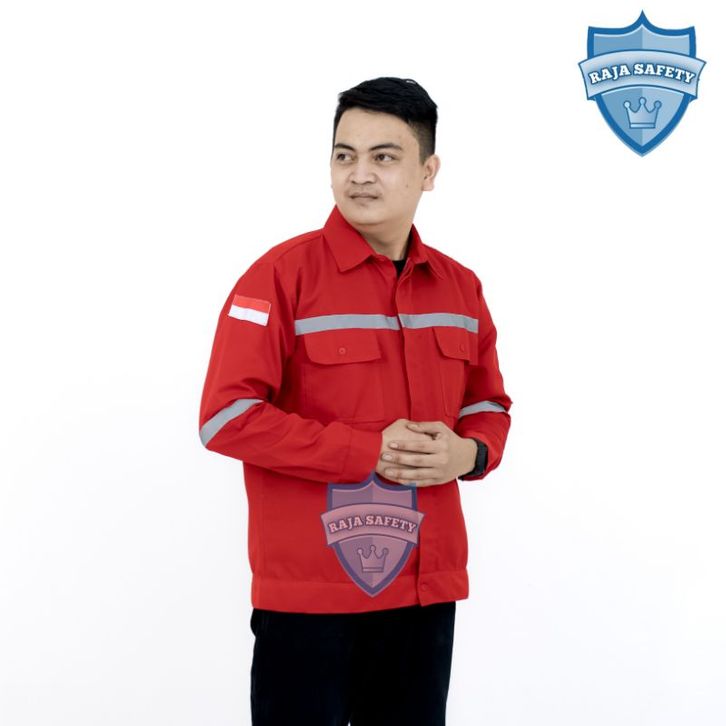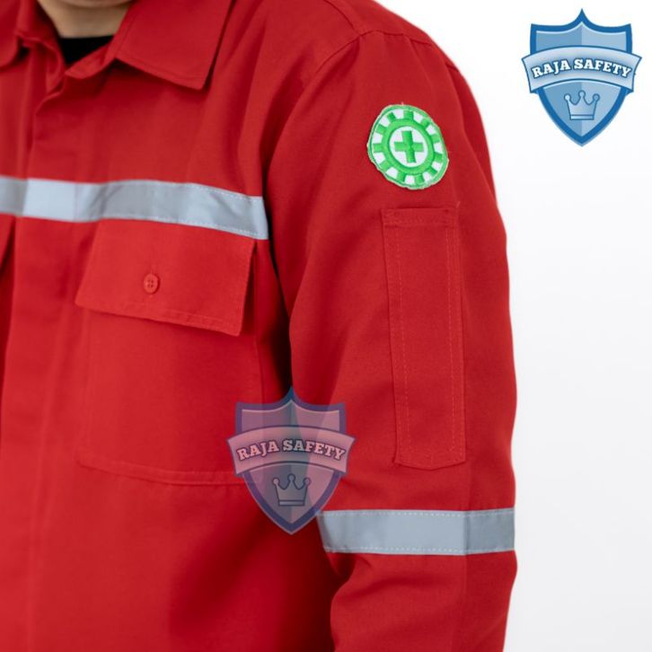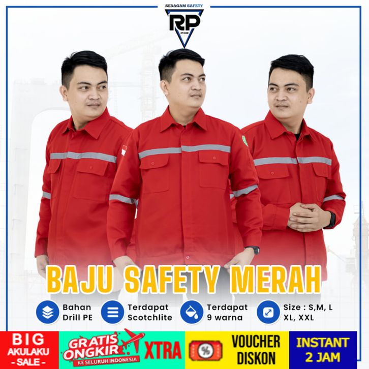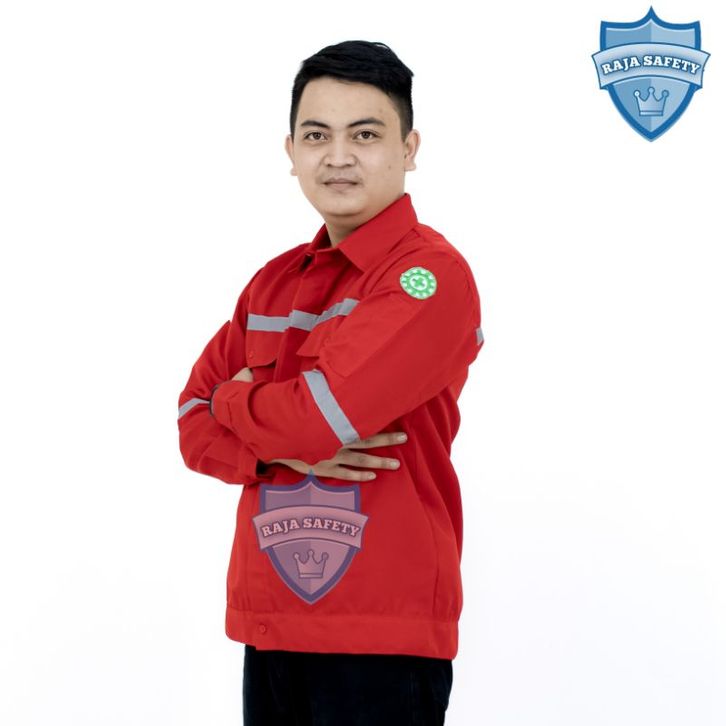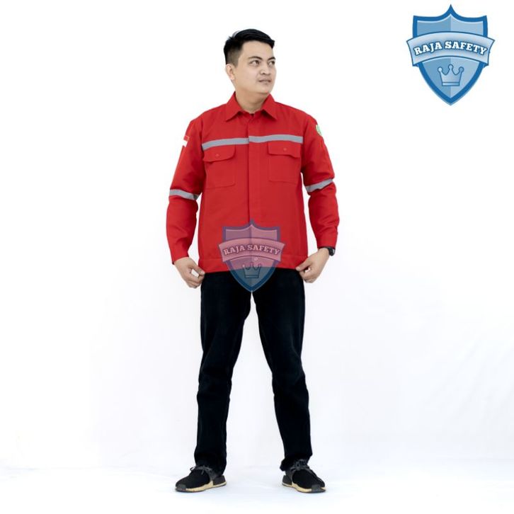 Baju Safety Merah Lengan Panjang SeraBaju Safety Merah gam Kerja Lapangan Kemeja Proyek Atasan Bahan Premium TANI MAKMUR