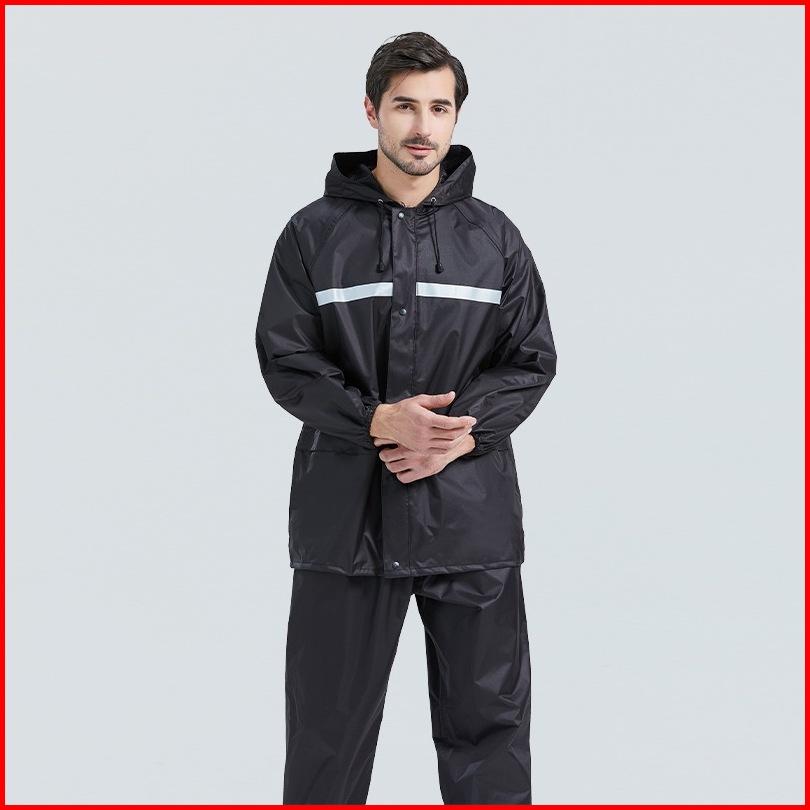 Zacro Jas Hujan Pria Jas Hujan Tebal Anti Angin Oxford Cloth Desain Karet Gelang Jas Hujan Dewasa