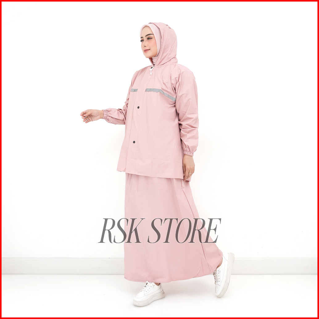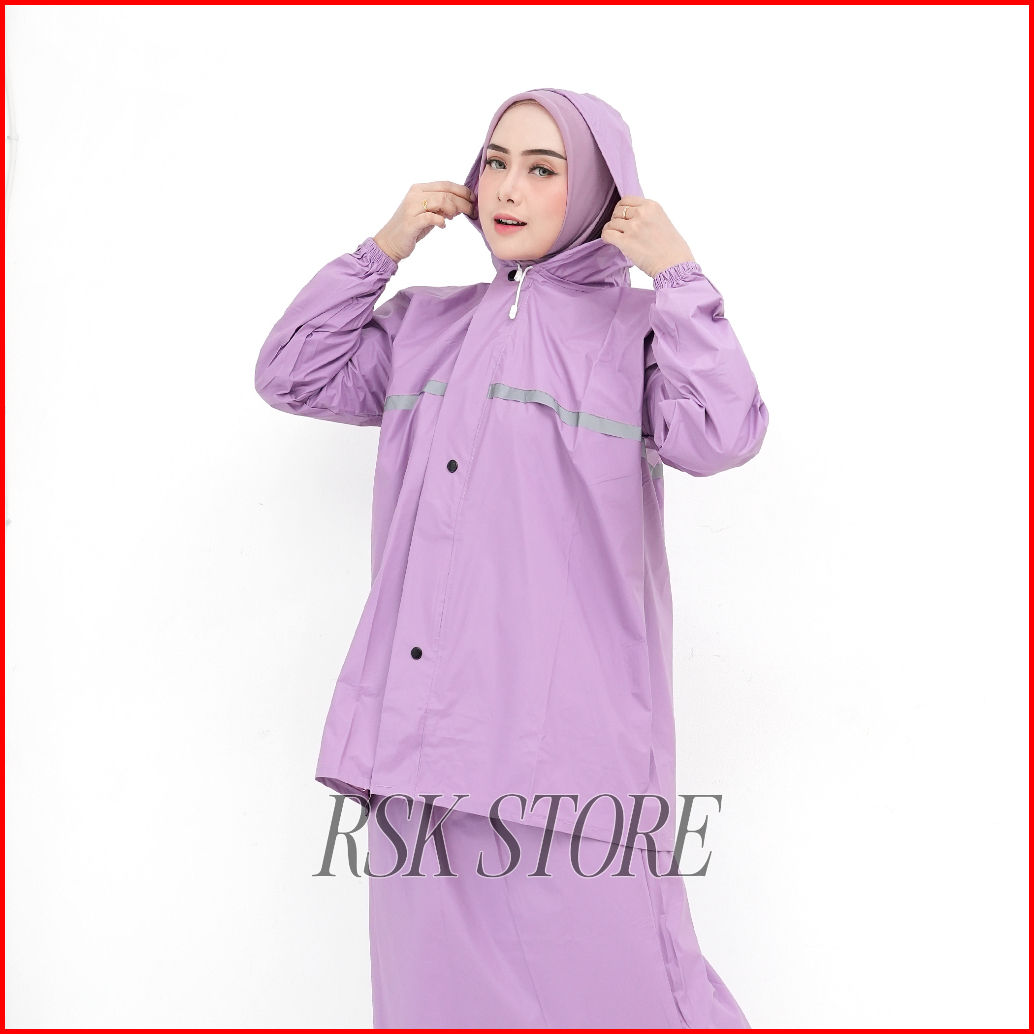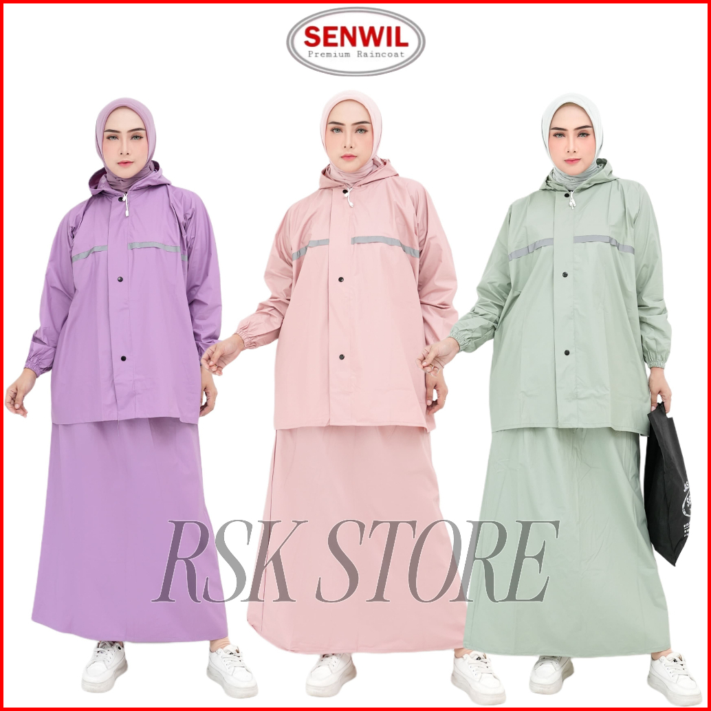 Jas Hujan Setelan Rok Wanita Raincoat Pvc Bahan Tebal Lentur Anti Rembes By Senwil