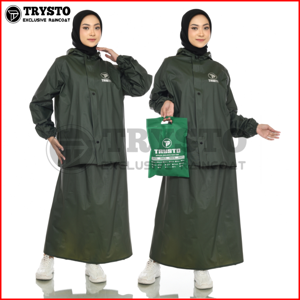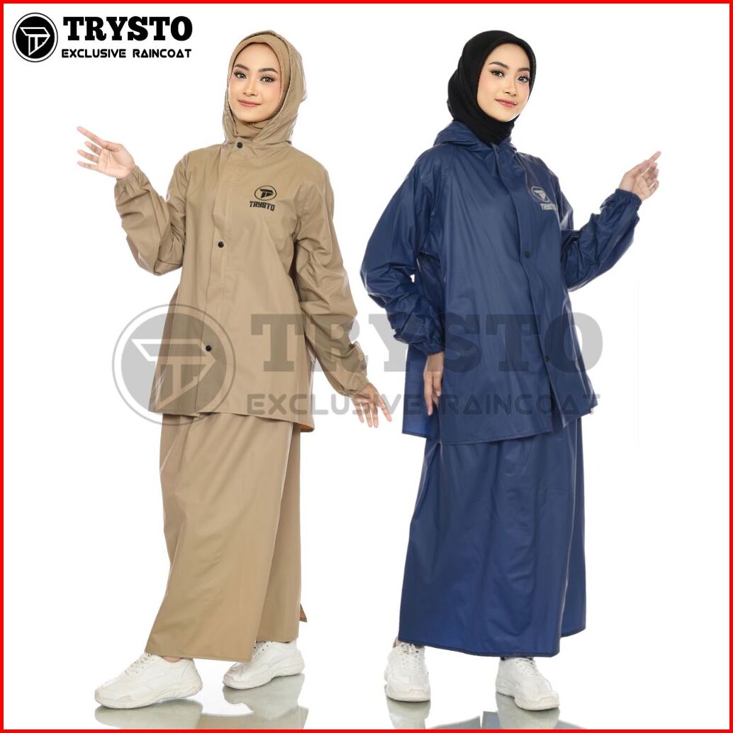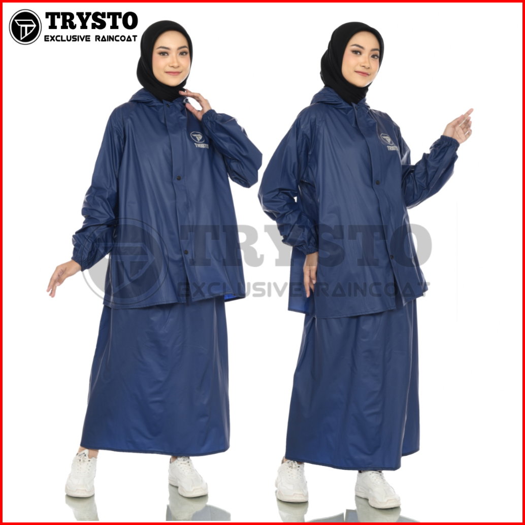 Jas Hujan Wanita Rok Setelan Baju Dan Rok Bahan Pvc Tebal Elastis Original By Trysto