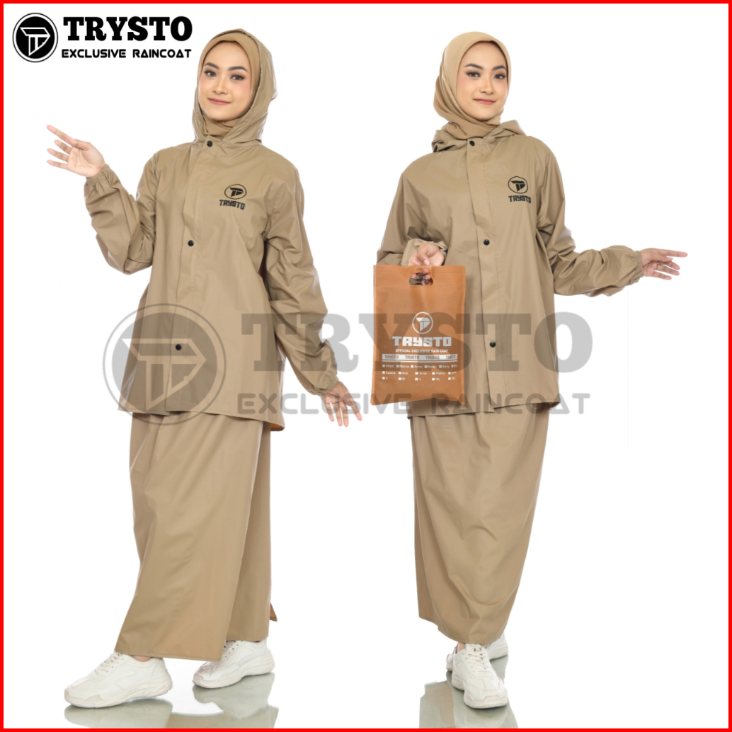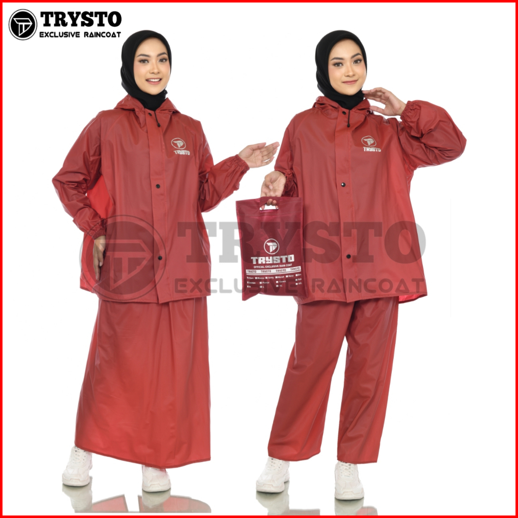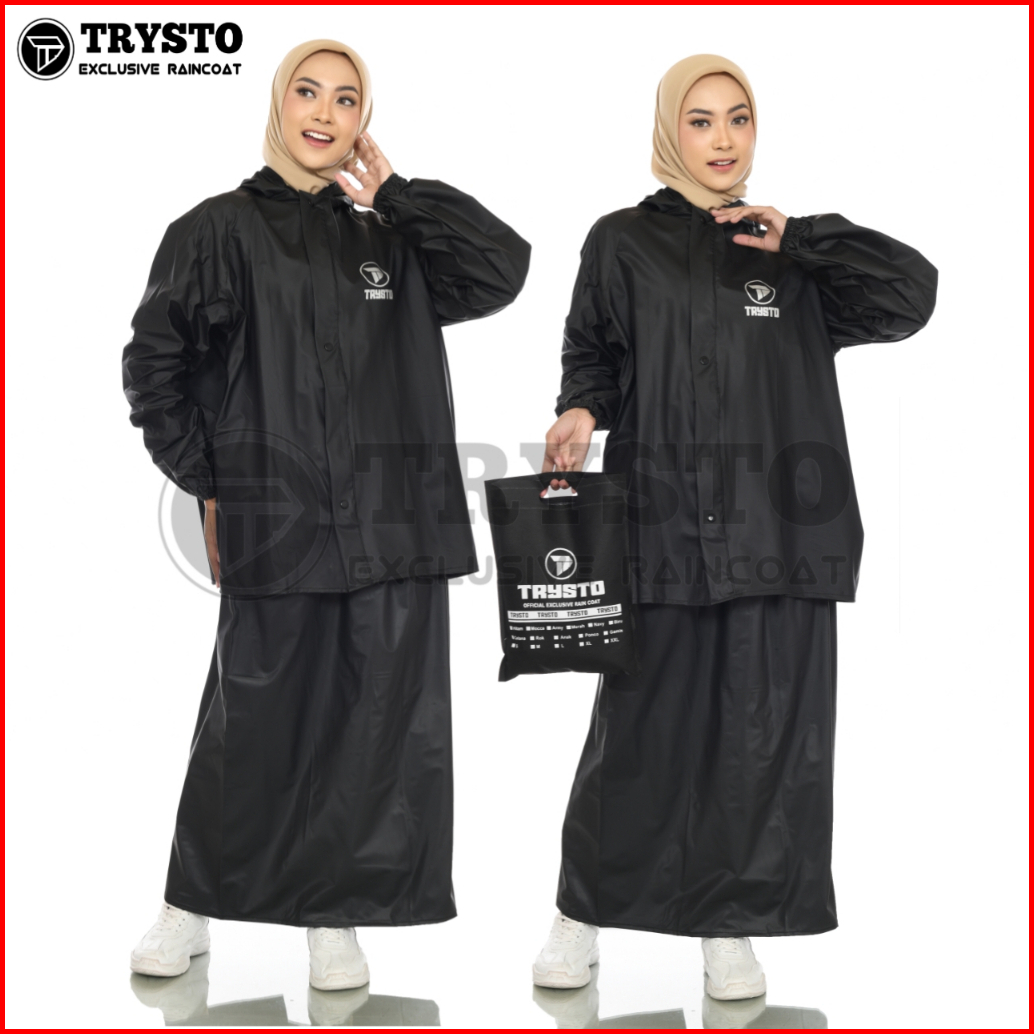 Jas Hujan Wanita Rok Setelan Baju Dan Rok Bahan Pvc Tebal Elastis Original By Trysto