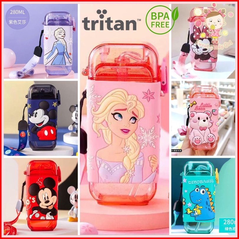 Best Seller Botol Minum Anak Tritan Botol Pinkah Mickey Minnie Elsa Bear 280ml Dengan Sedotan
