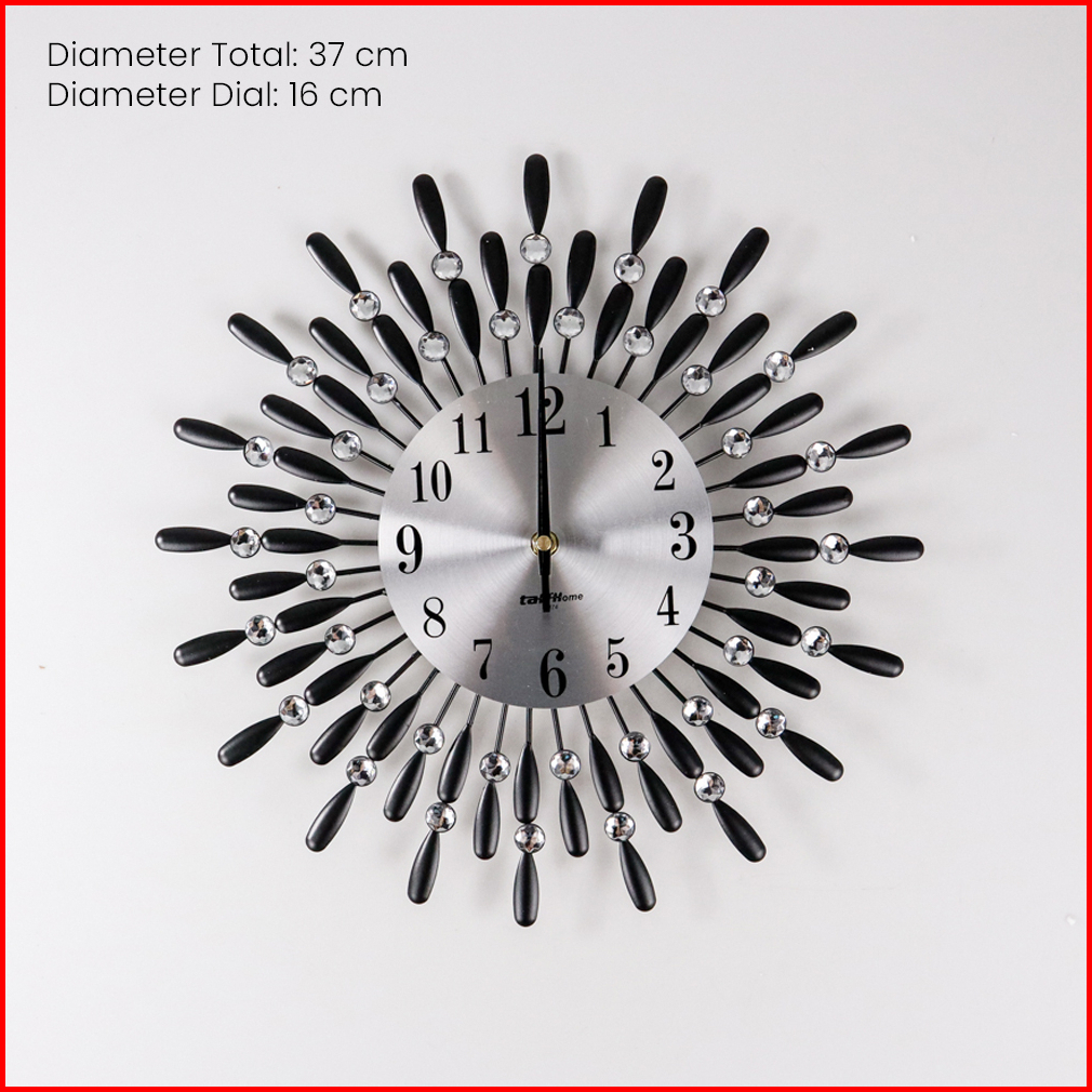 Jam Dinding 3d Quartz Creative Luxury Diamond 37 Cm - H74 - Silver Black 7rhzktsl