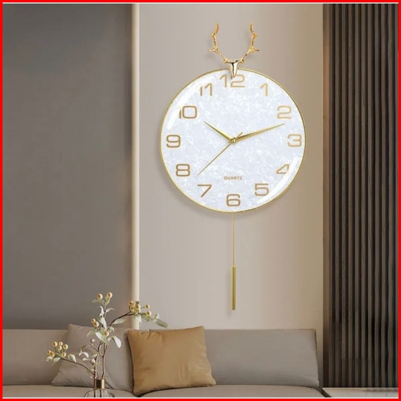 Jam Dinding Modern Mewah Deer Modern Luxury Nordic Wall Clock With Pendulum