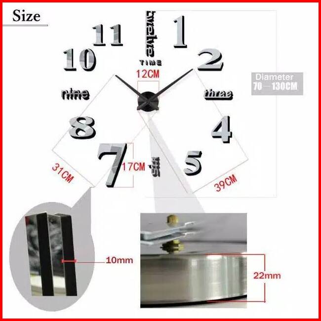 Jam Dinding Angka Besar Raksasa 3d Giant Wall Huruf Angka Diameter 70-130cm Elet 659