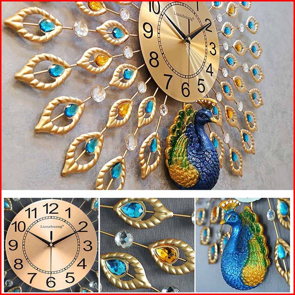 Terbaru 2021 Jam Dinding Mewah Merak Bulat Quartz Clock Diamond Peacock 60cm - H19 - Golden