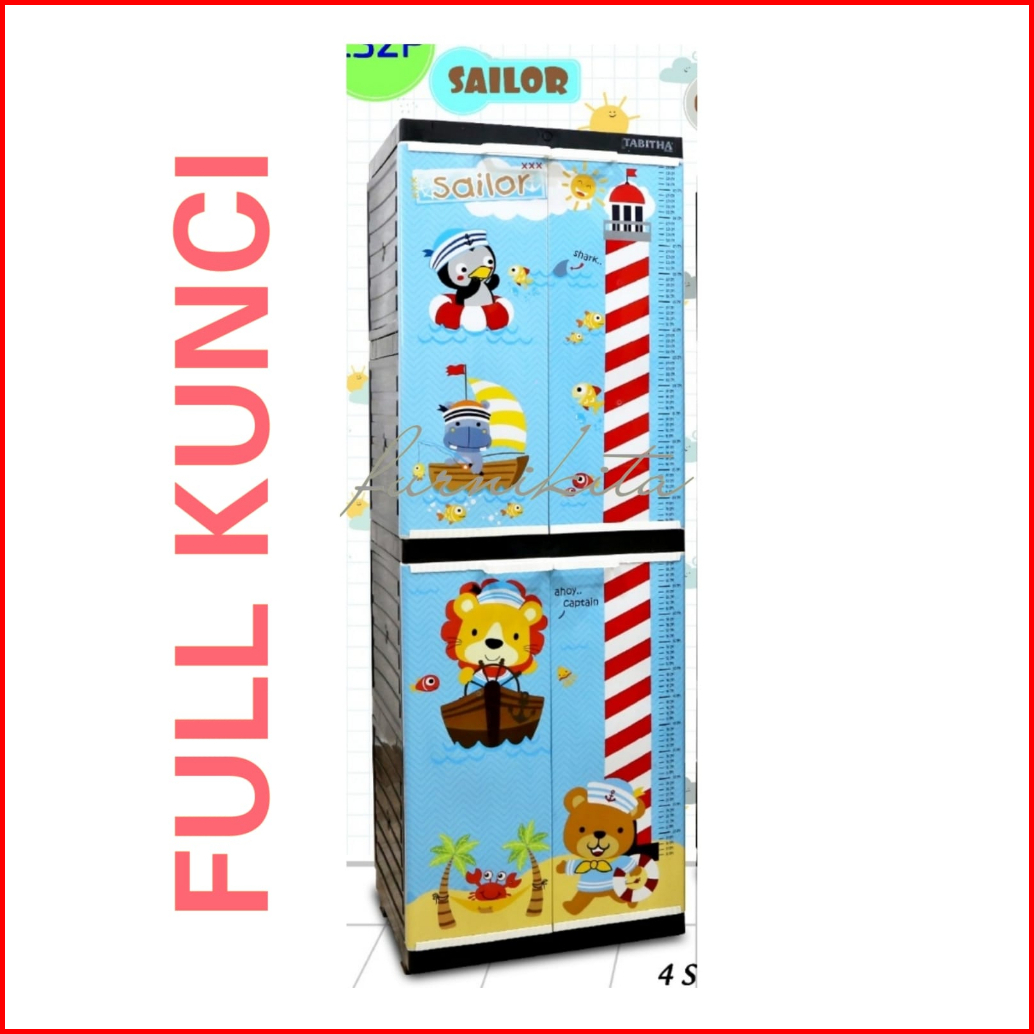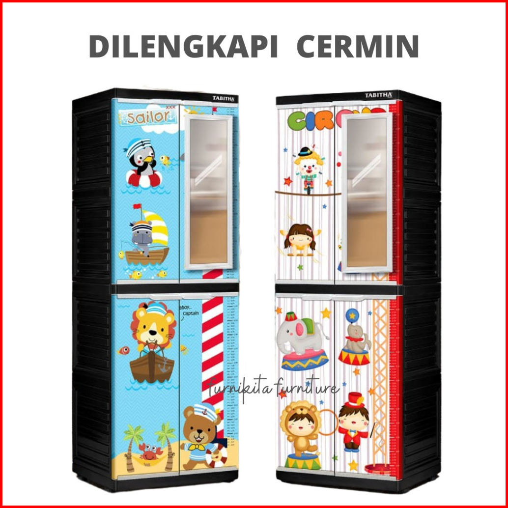 Lemari Pakaian Plastik Tabitha Susun 4 Karakter Kunci Cermin