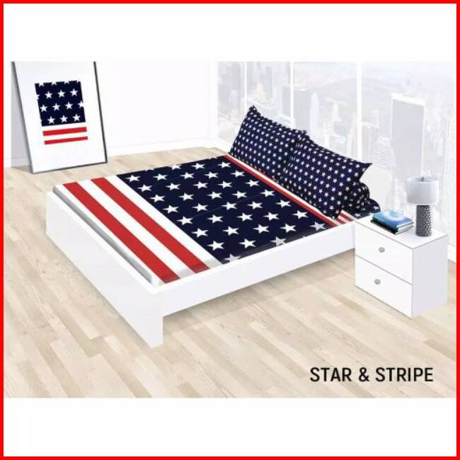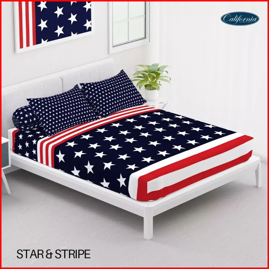 California - Sprei 90 100 120 140 160 180 200 Small Single Queen King Ekstra King Motif Bendera Amerika America Usa Us S