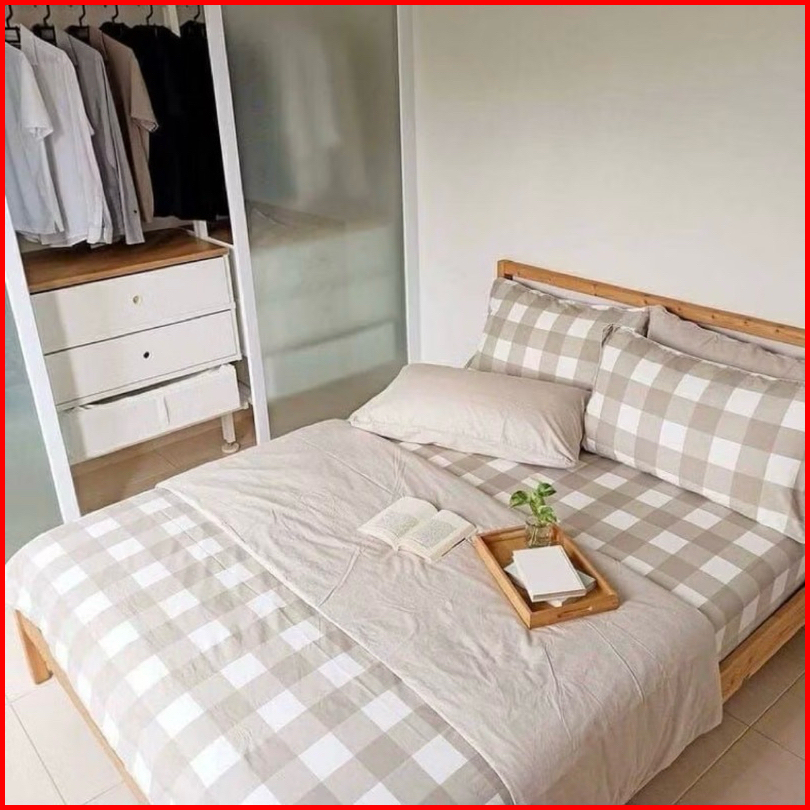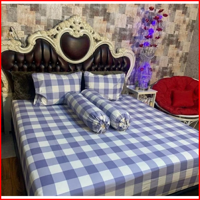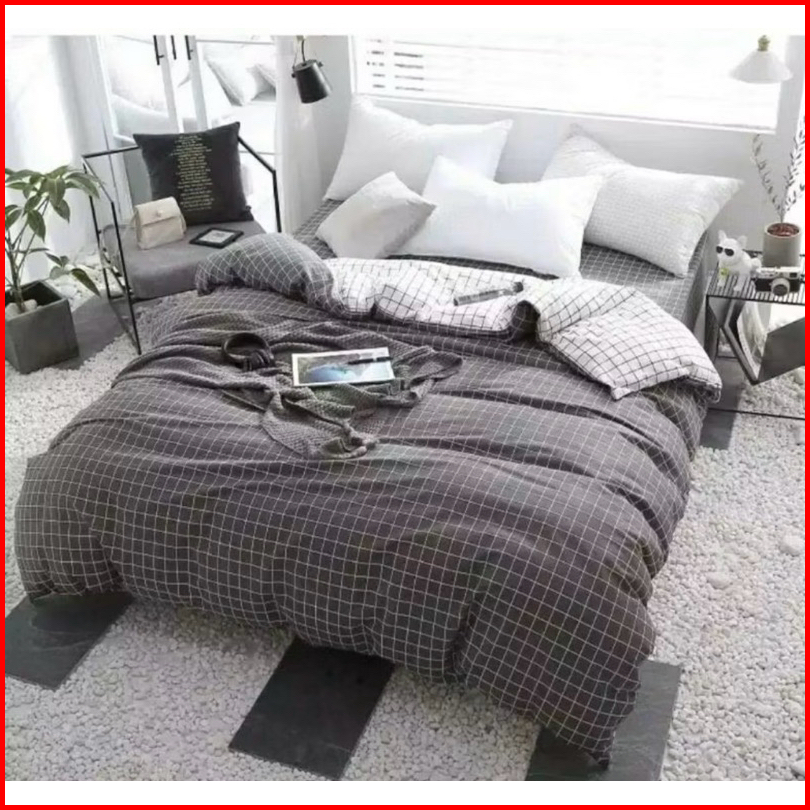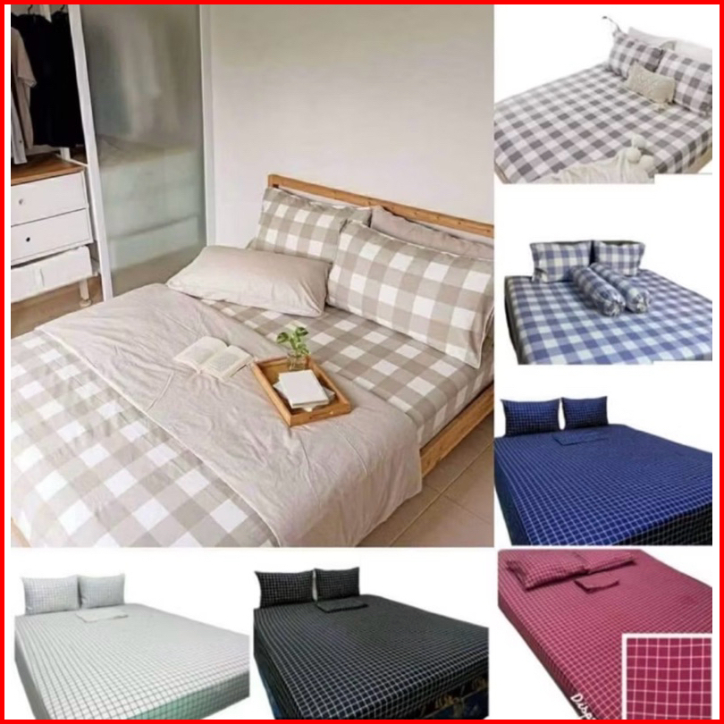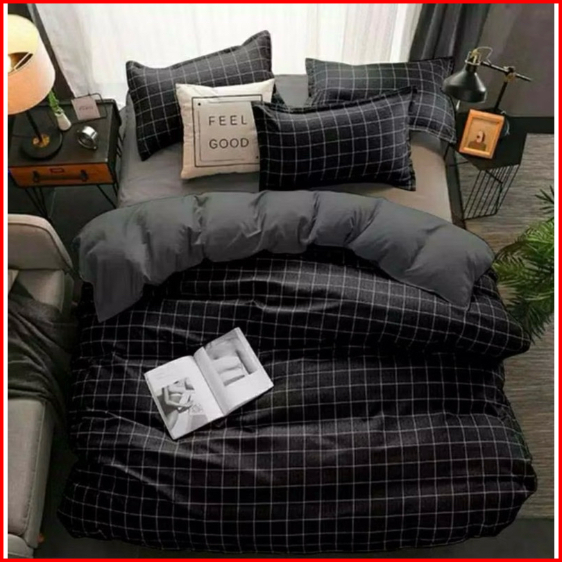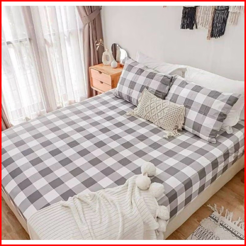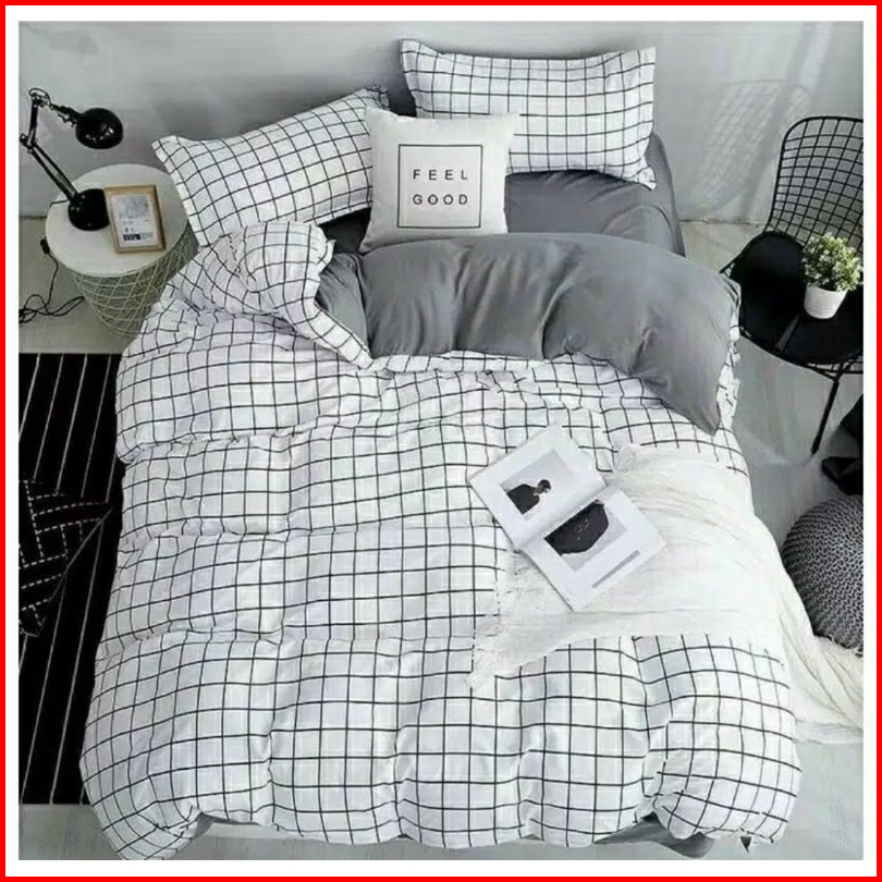 Sprei Homemade Aistetic Kece Sprei Keren Kotak-kotak Warna Hitam Abu Biru Putih 90x200 120x200 160x200 180x200 200x200