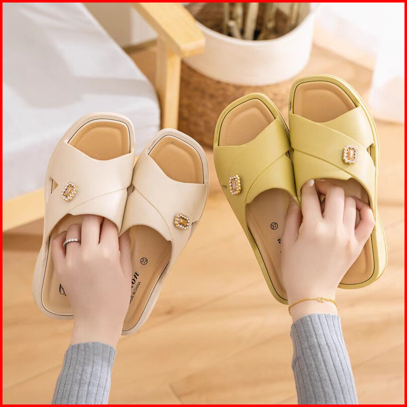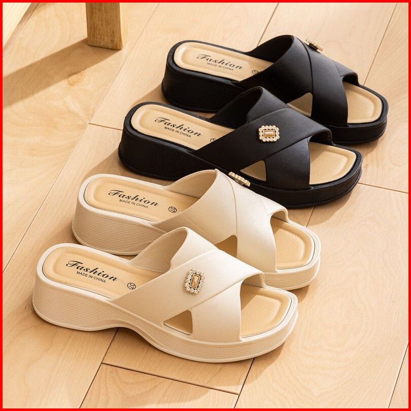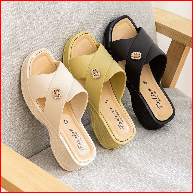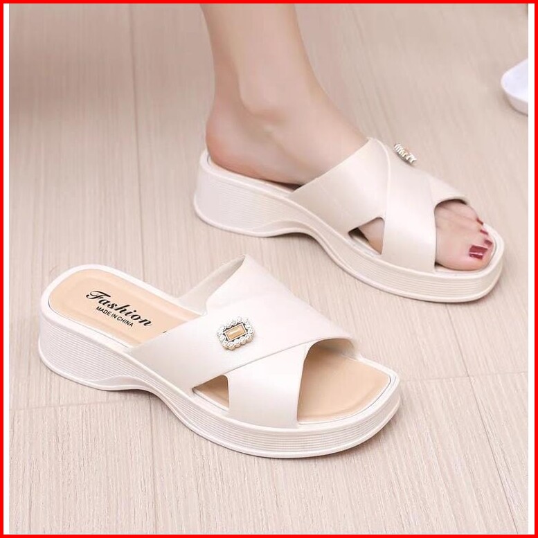 Lvr Suhyeon Sandal Slip On Wedges Wanita Silang Korean Kekinian Tg1978