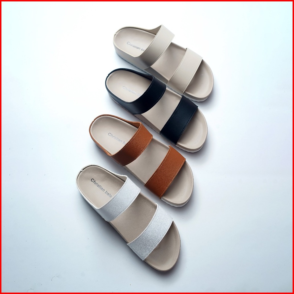 Christian Bale Julie Sendal Slop Wanita Kekinian Sendal Cewek Elegan Sandal Flat Casual Terbaru 2025
