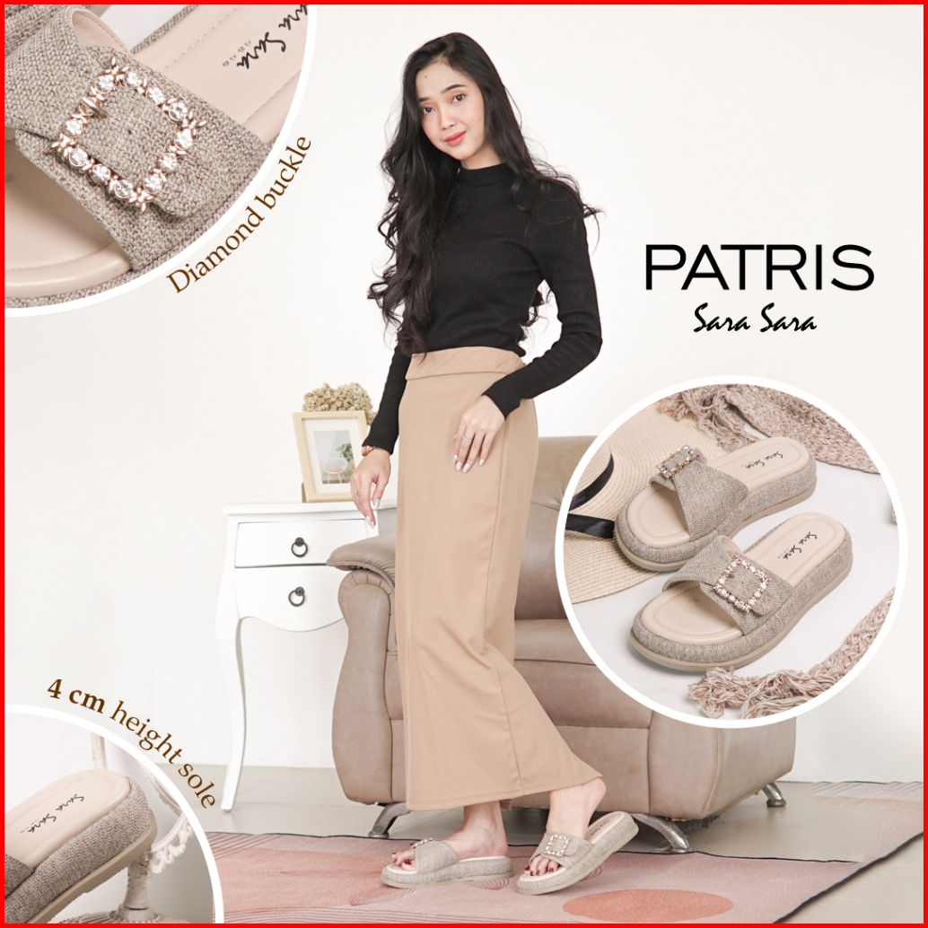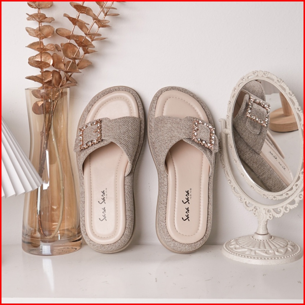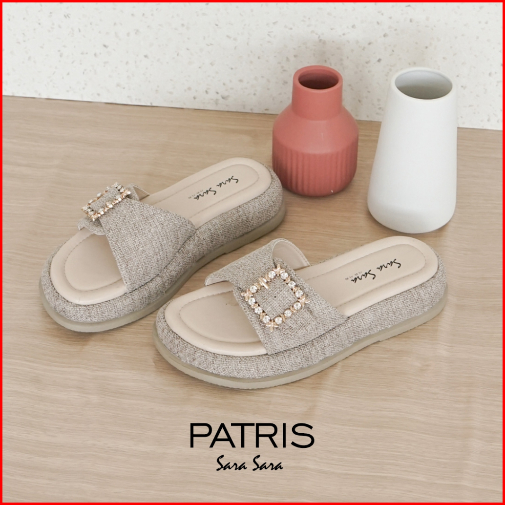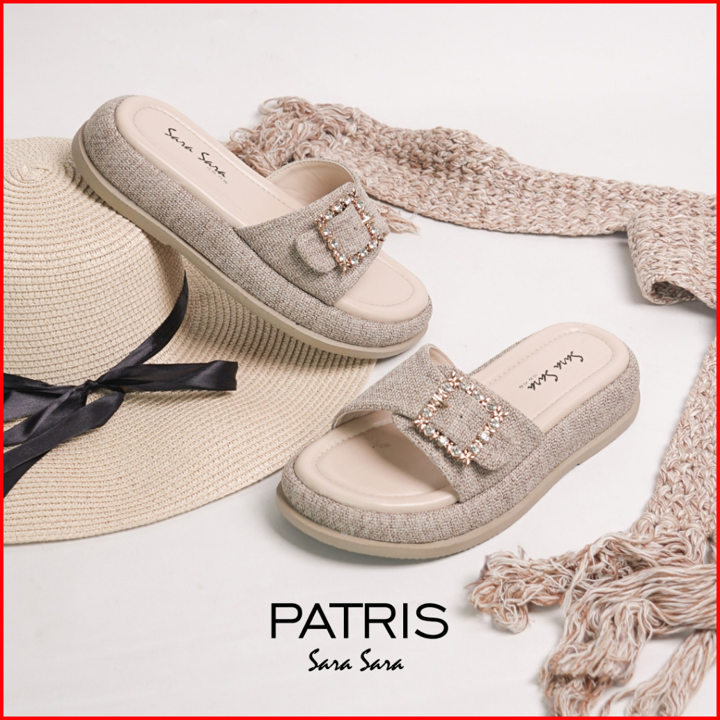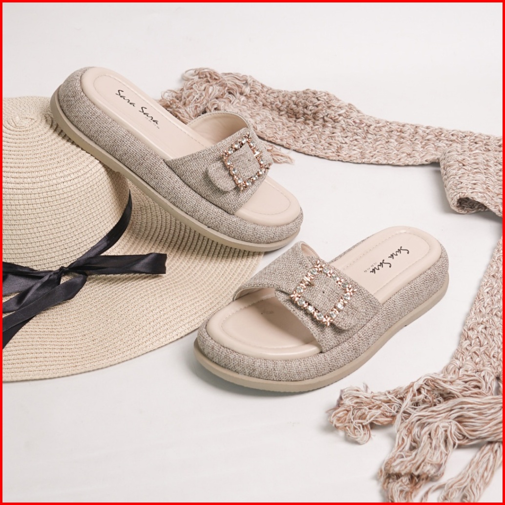 Sara Sara Patris Sandal Selop Wanita Platform Fabric Tweed Sendal Slop Cewek Cantik