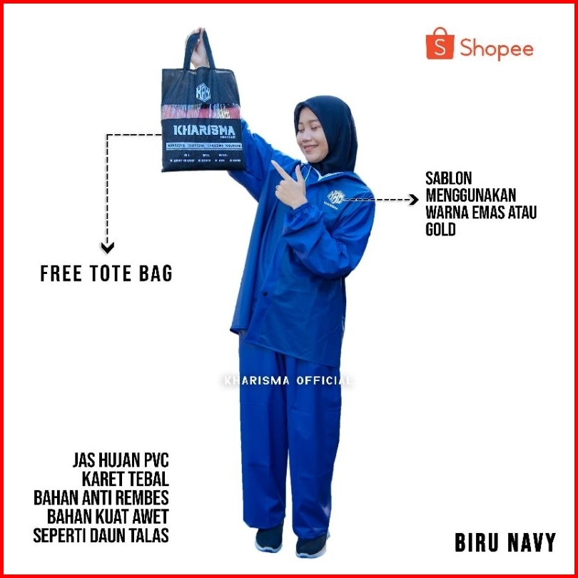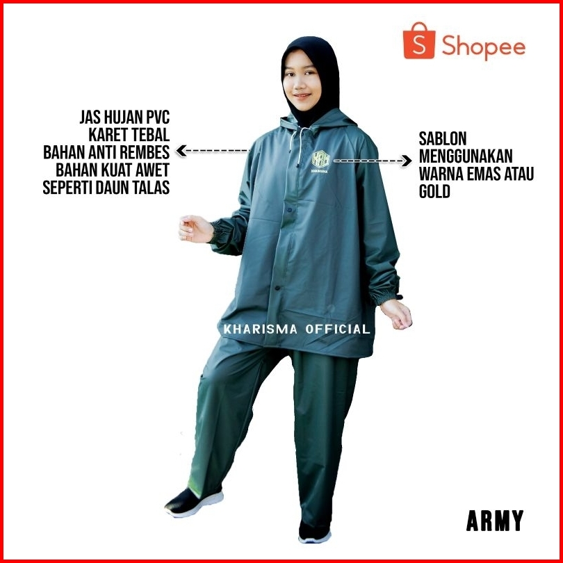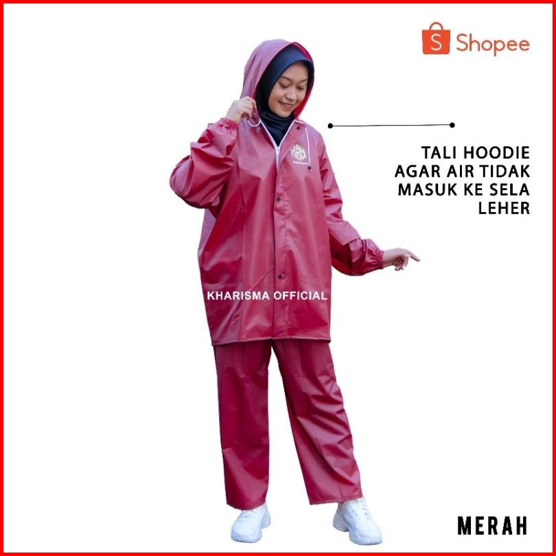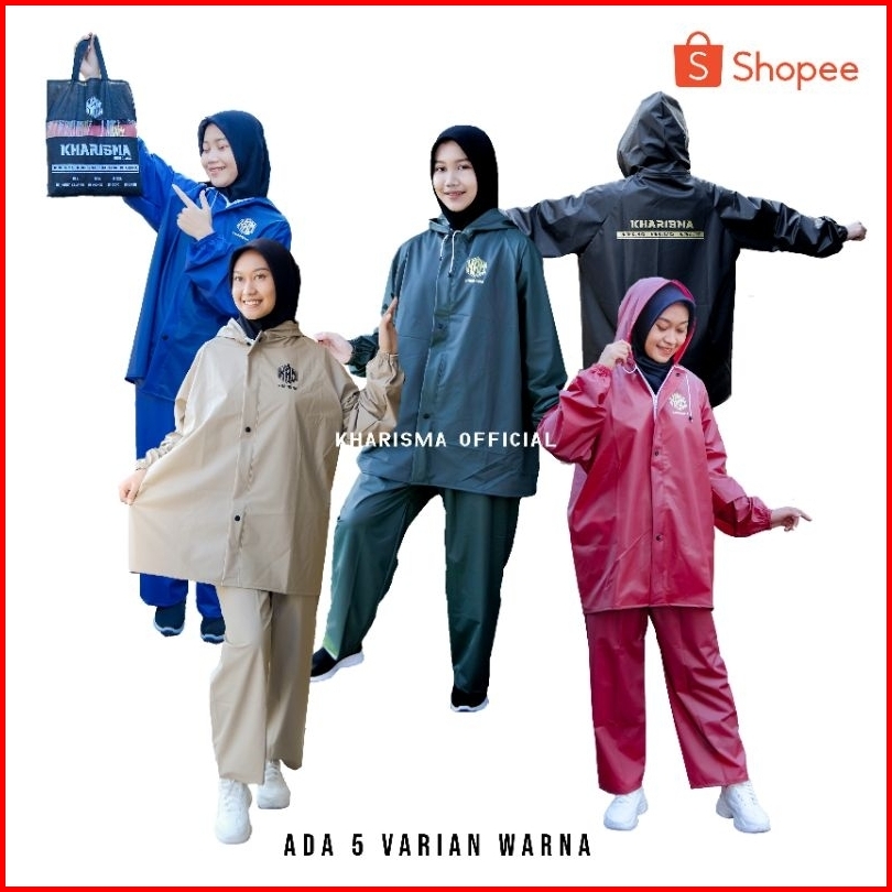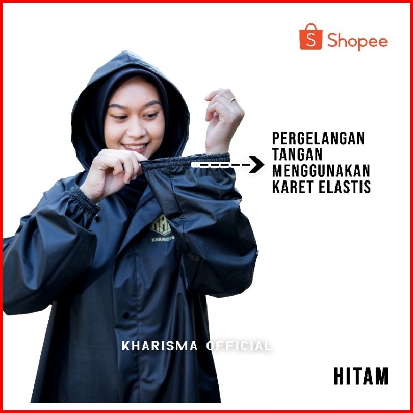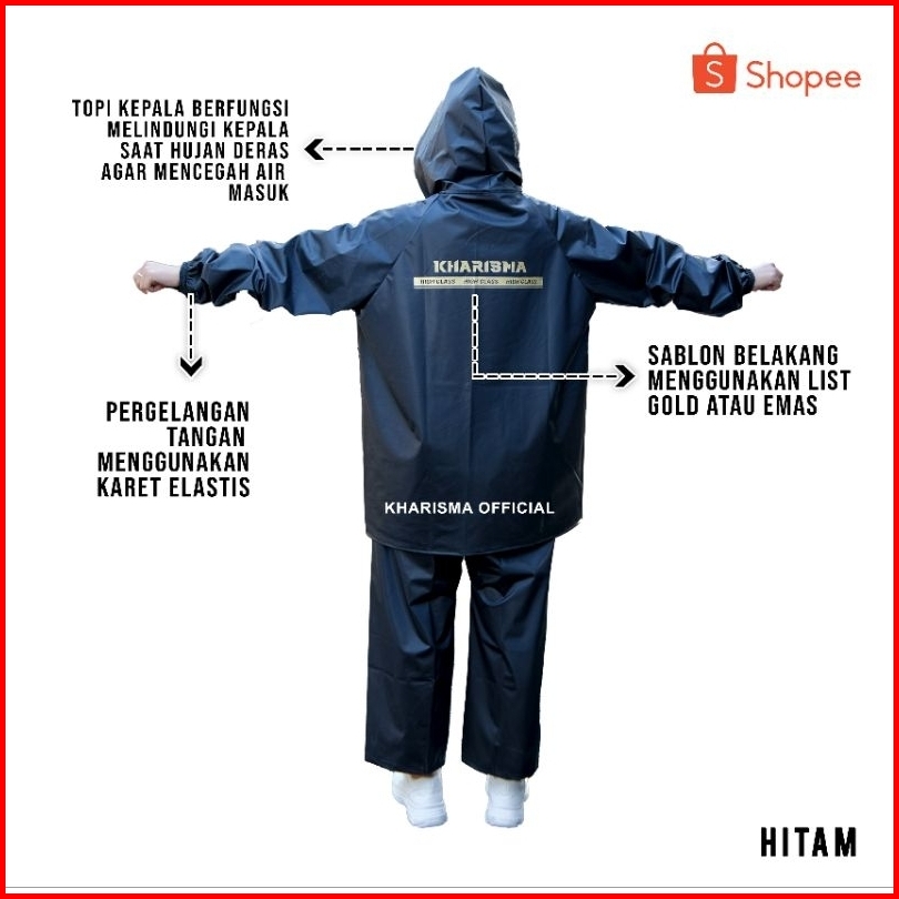 Kharisma Jas Hujan Setelan Pria Wanita Raincoat Bahan Pvc Premium Tebal Kuat Anti Rembes Hitam