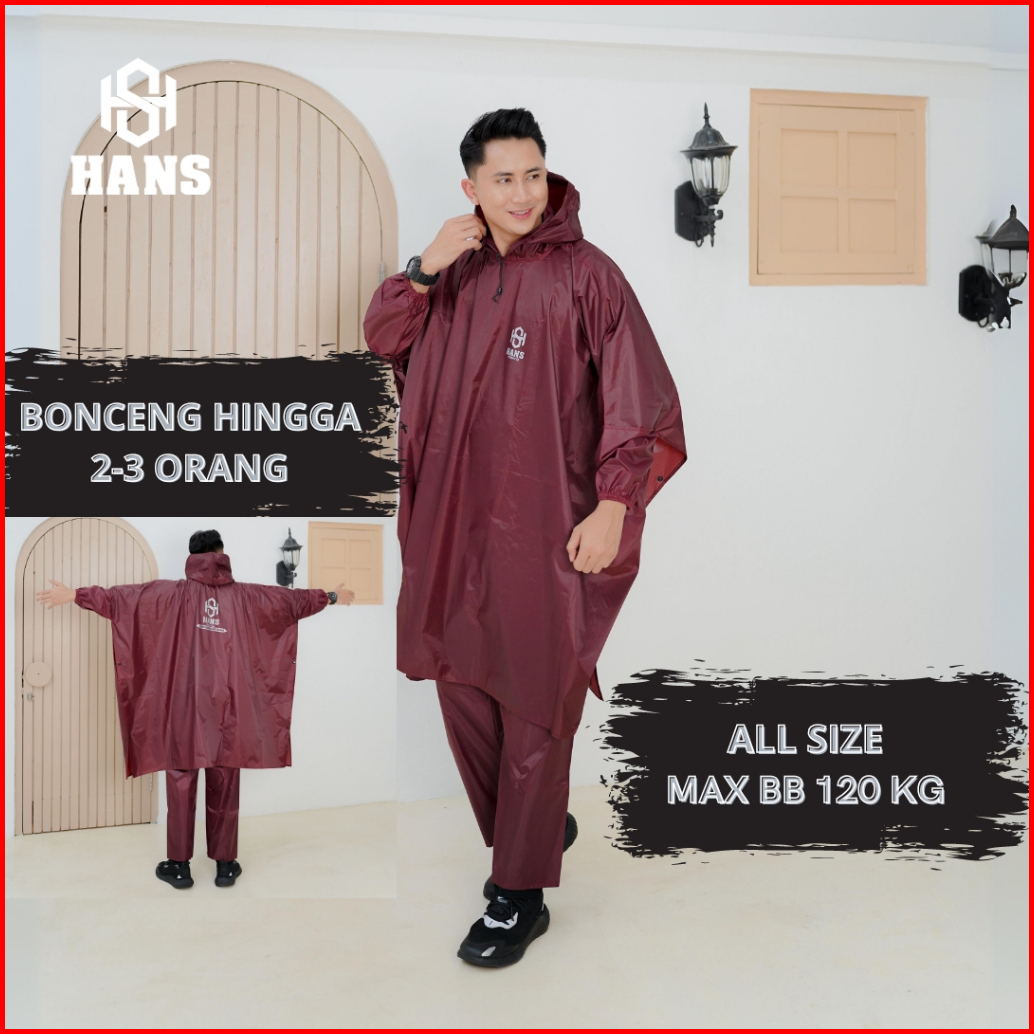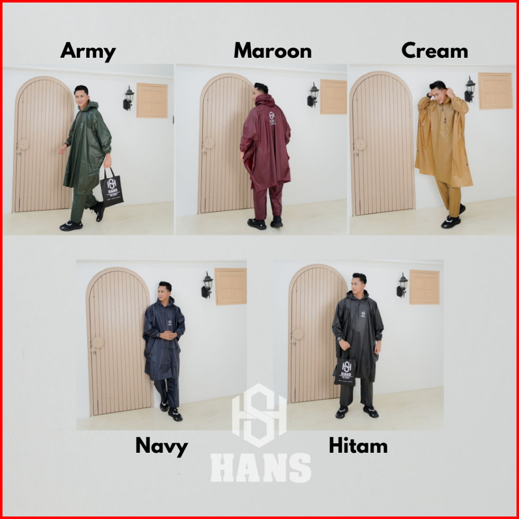 Jas Hujan Ponco Lengan Kelelawar Setelan Celana Pria Wanita Anti Rembes Bahan Tebal Dan Awet By Hans