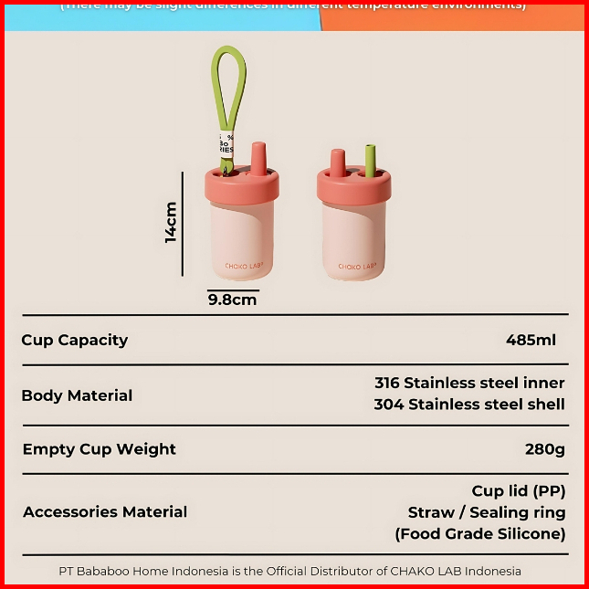 Chako Lab Bobo Vacuum Cup Insulated Thermos 485ml - Pastel Color Chakolab