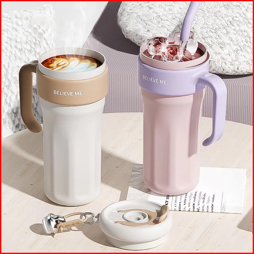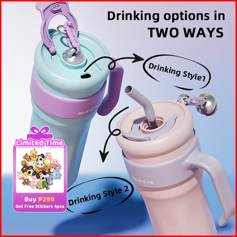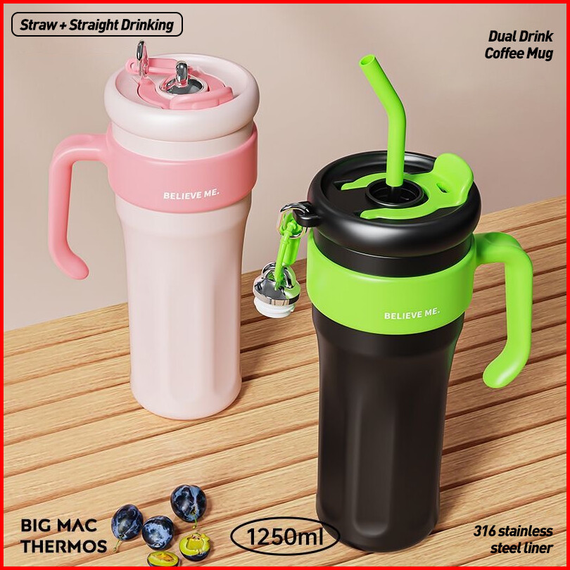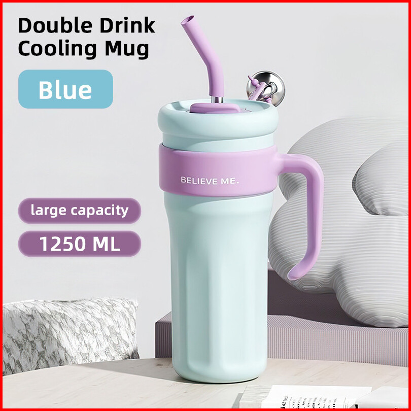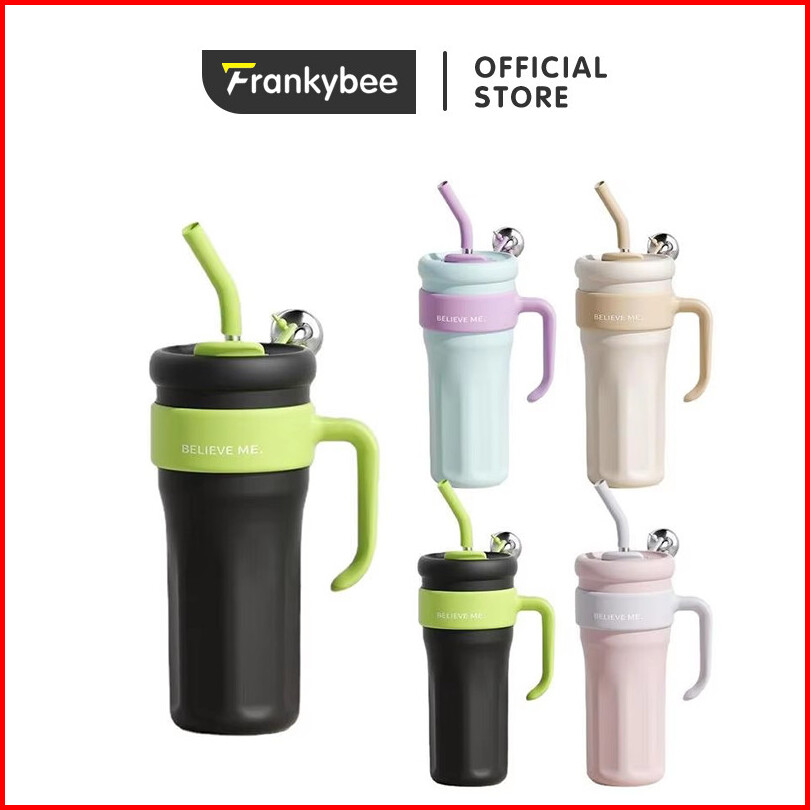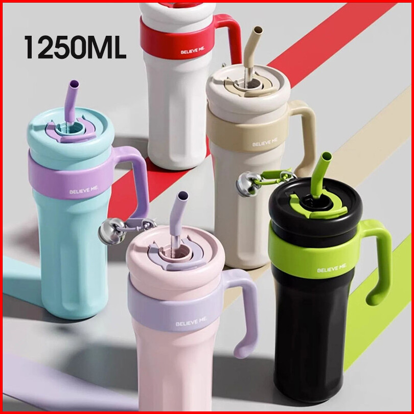 Frankybee 40oz Water Bottle Flask Thermal Vacuum Tumbler Mug Double Walled With Handle Straw 1.25l Stainless Steel Vacuu