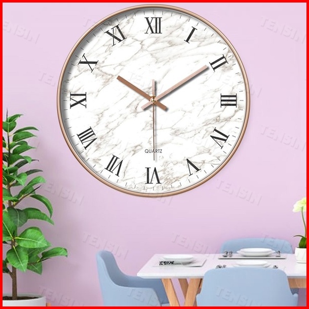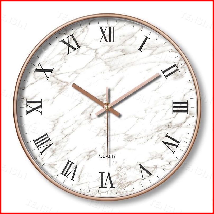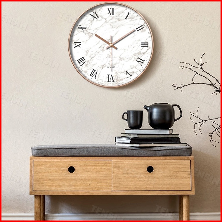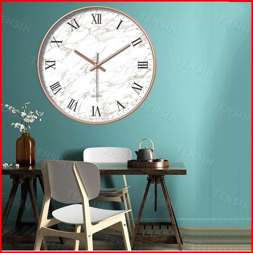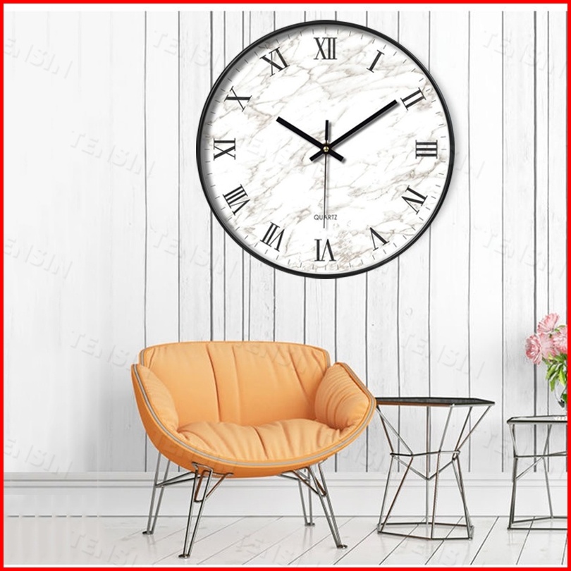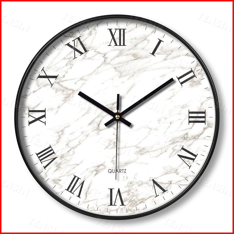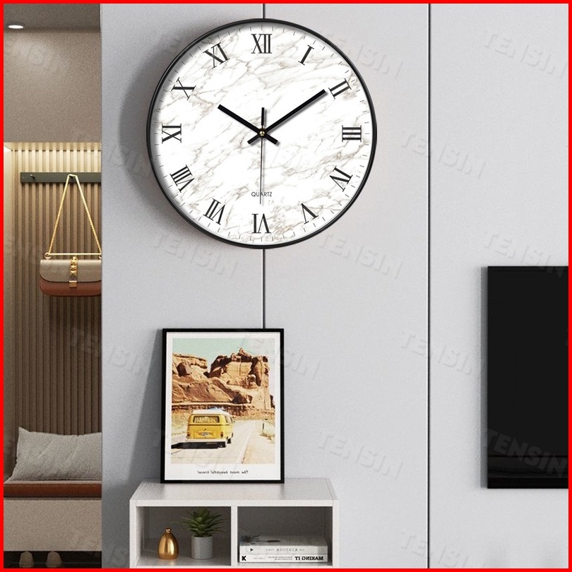 Tensin Jam Dinding Motif Marmer Putih M47 Jam Dinding Aesthetic 30cm Jam Dinding Tempel
