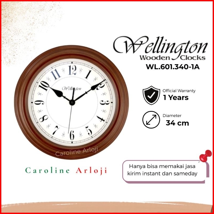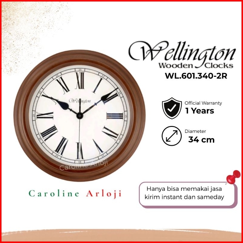 Jam Dinding Wellington Kayu 601340-1a-2r Original Garansi Resmi