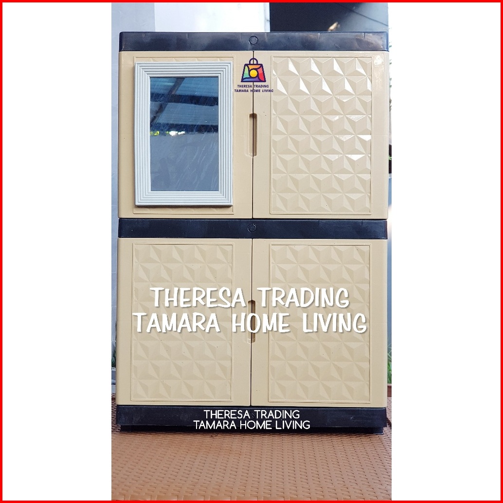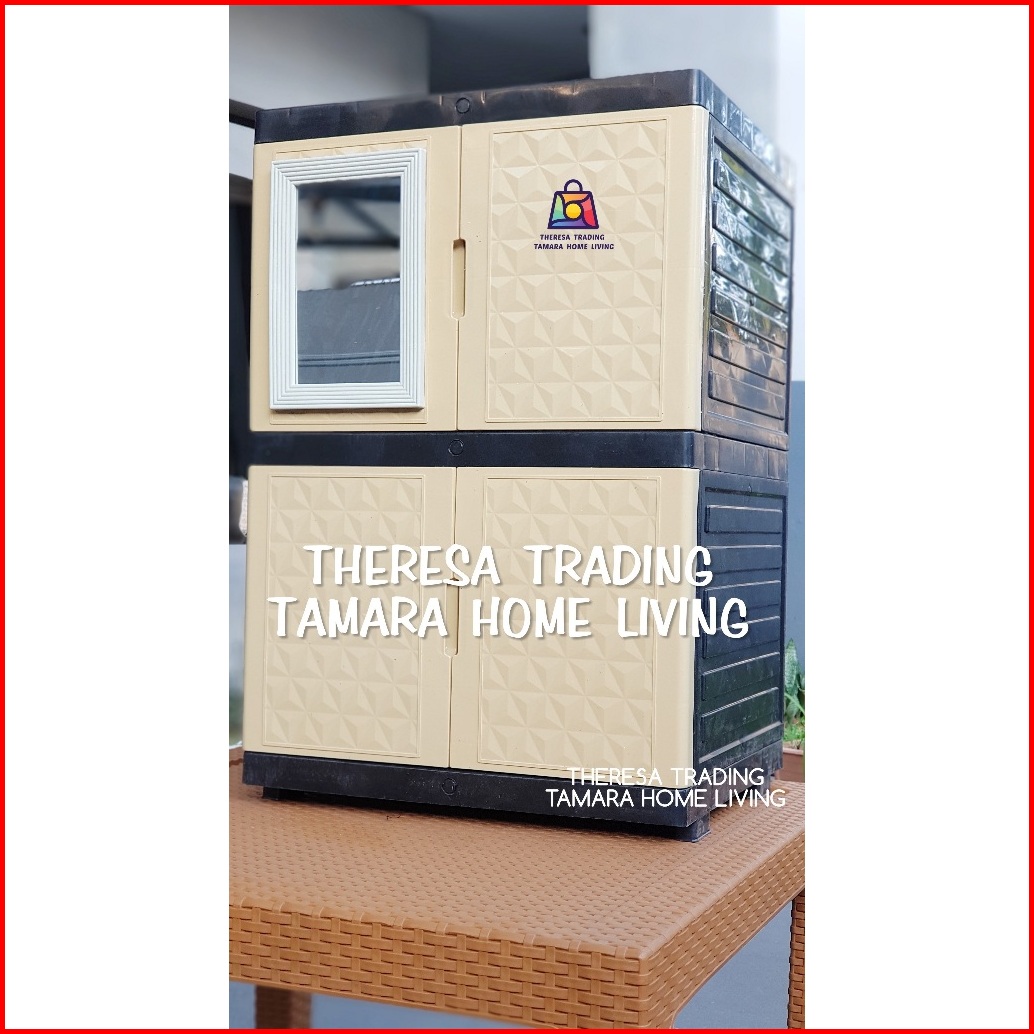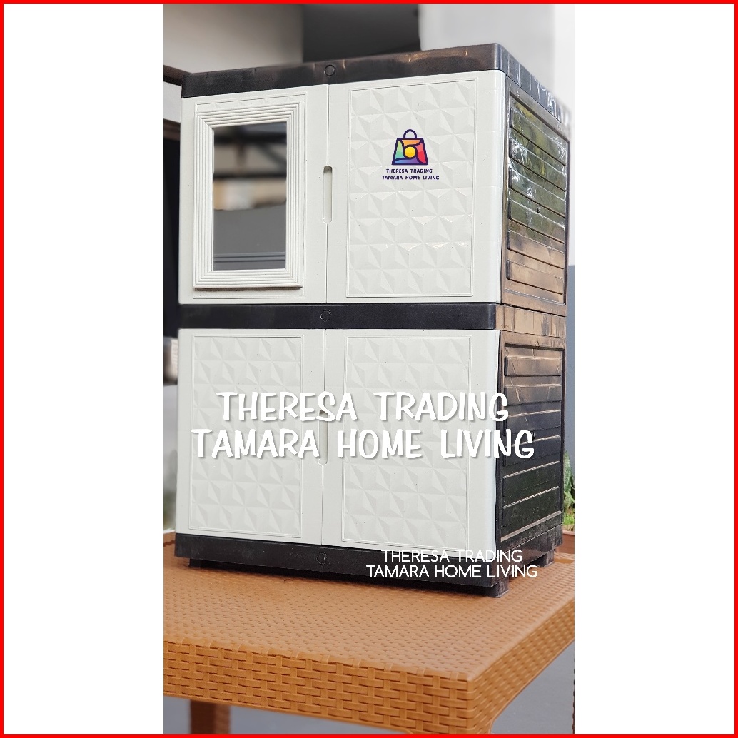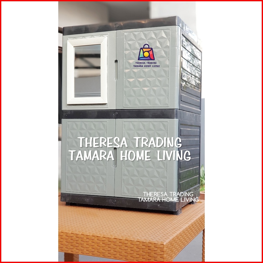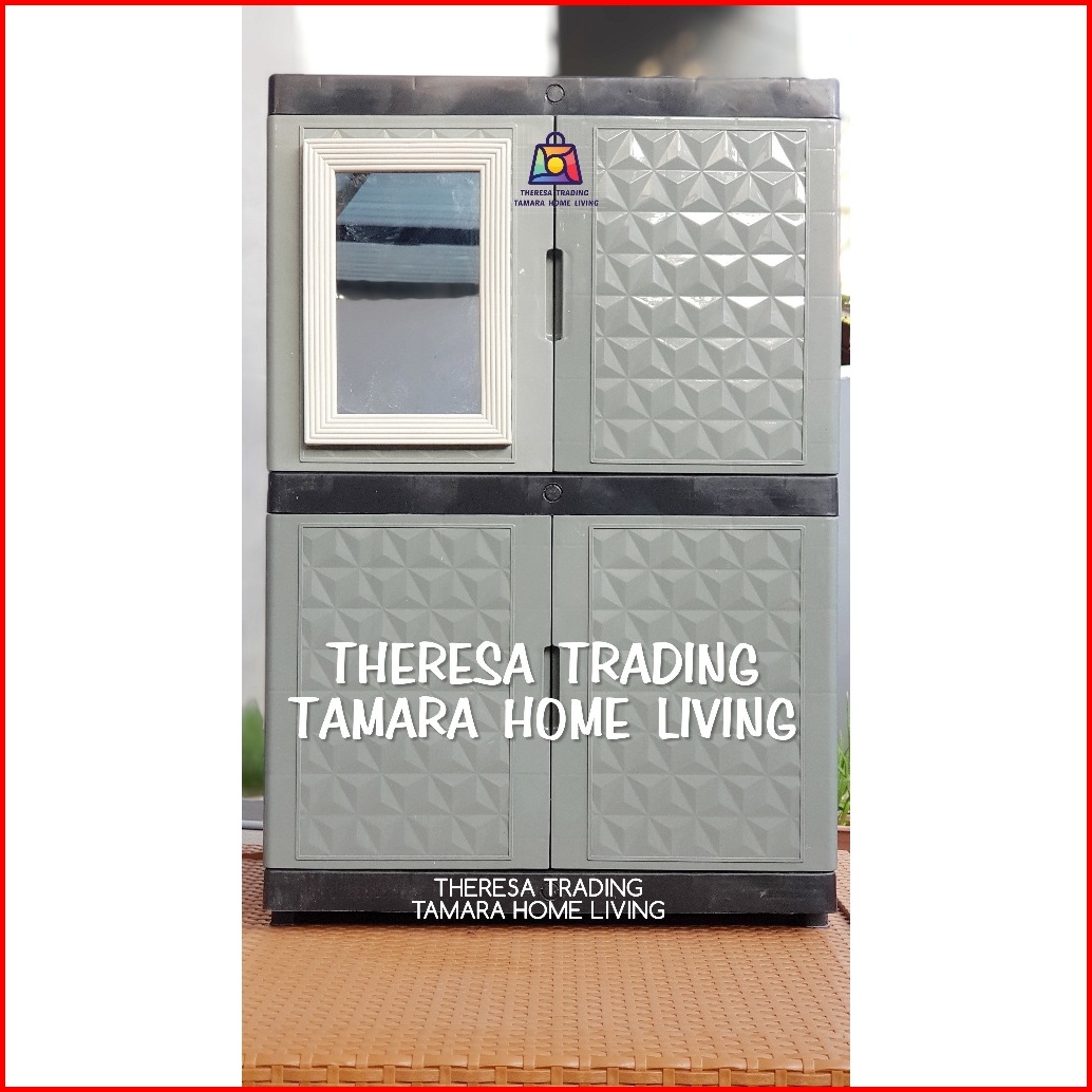 Lemari Plastik Serba Guna Diamond Kaca Cermin 2 Susun 2 Design Premium Serba Guna
