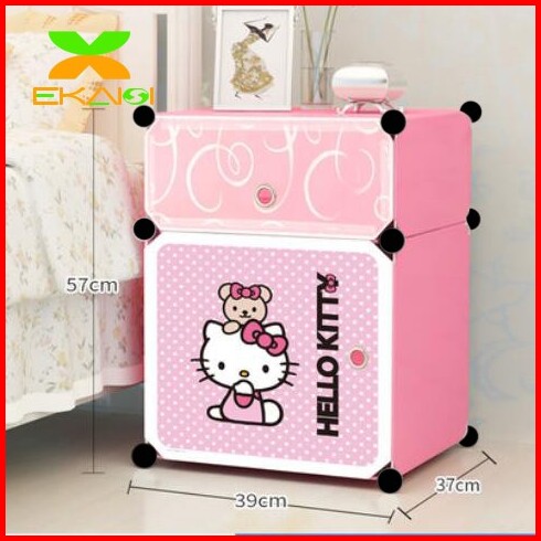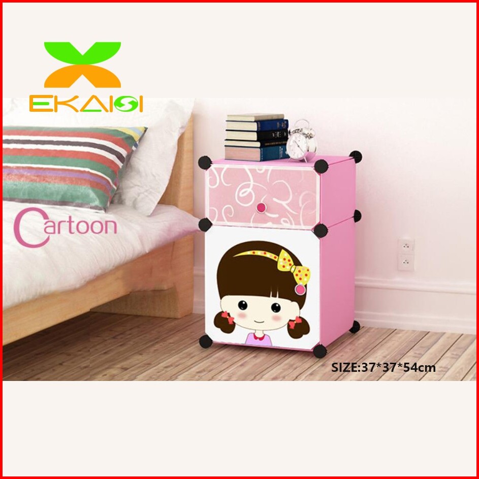 Lemari Pakaian Plastik Bedside Table Anti Air Rak Buku Susun 2 Pintu Kotak Pintu Ls