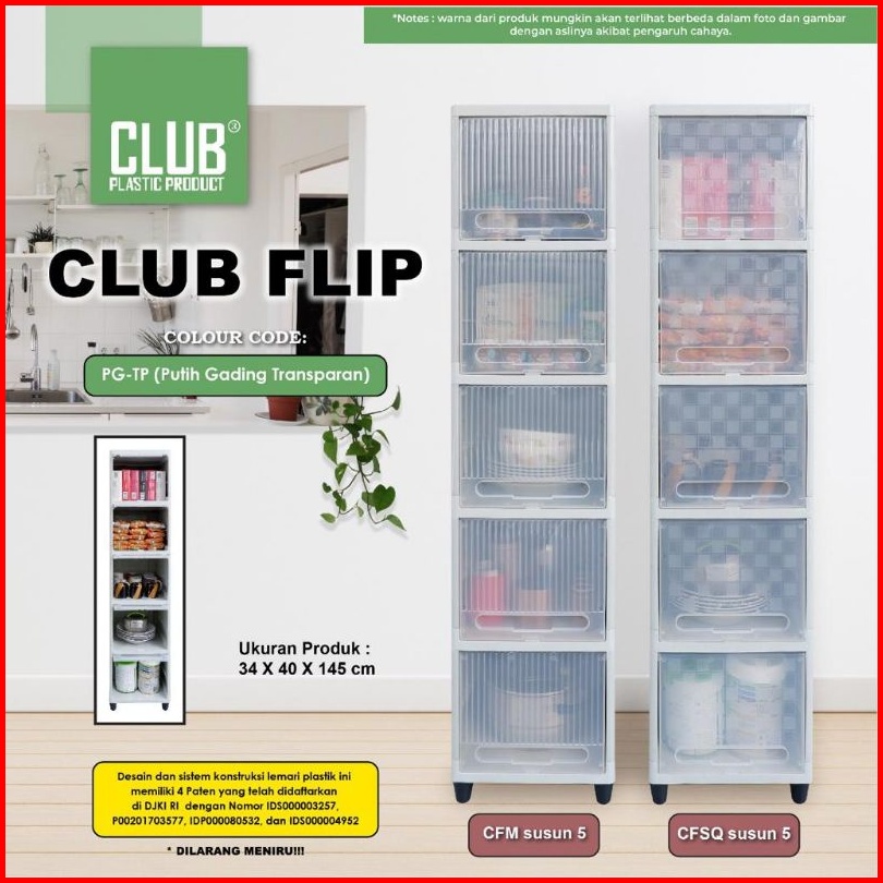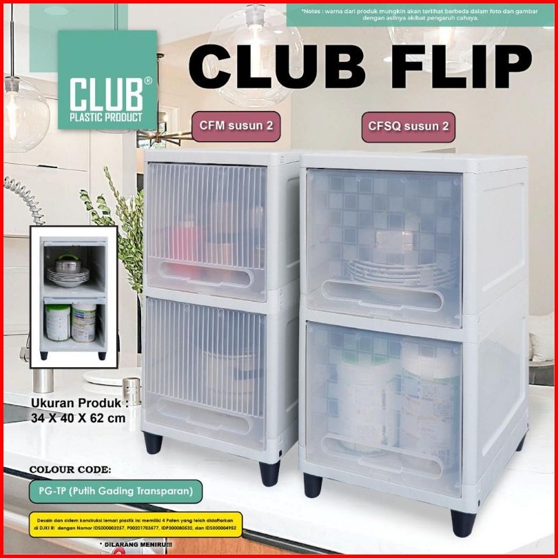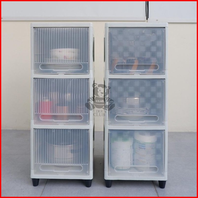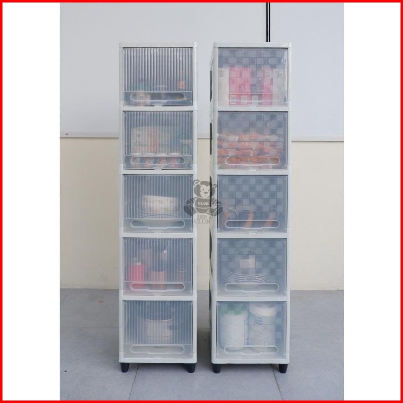 Club Lemari Cabinet Plastik Serbaguna Pintu Transparan Lemari Tas Flip Susun 5 4 3 2 Single