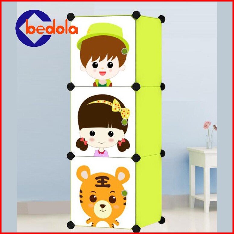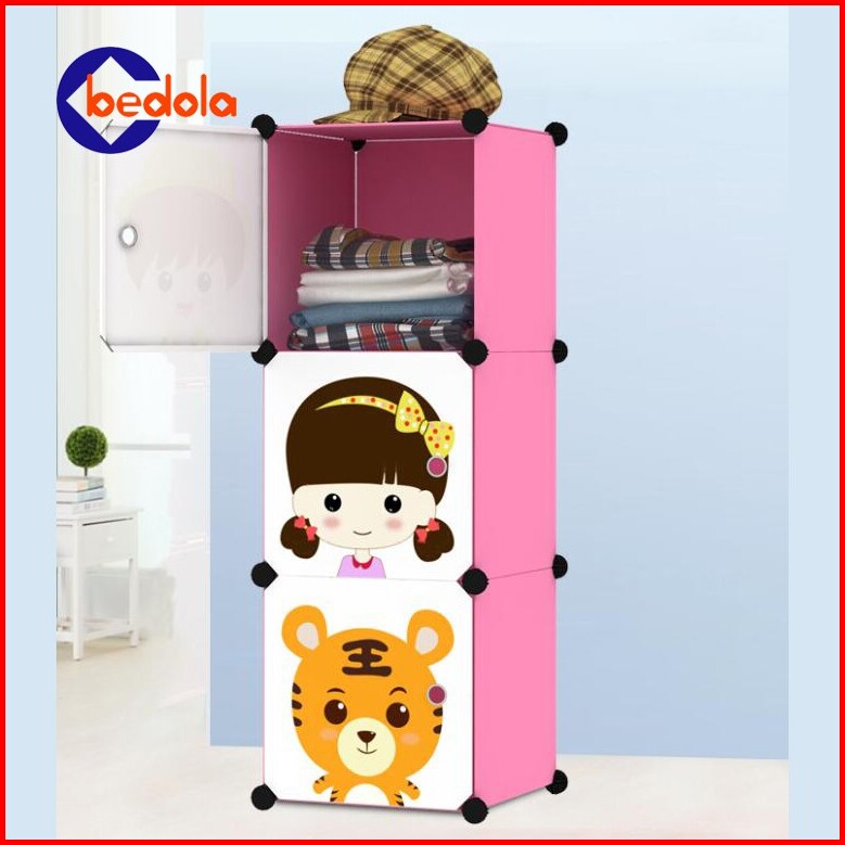 Lemari Plastik Lemari Pakaian Rak Serbaguna Susun Lemari Baju 3 Pintu Kotak