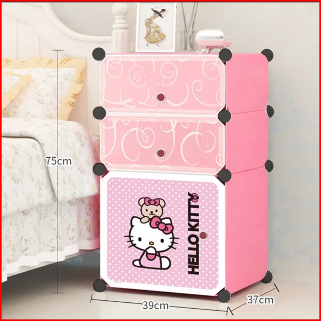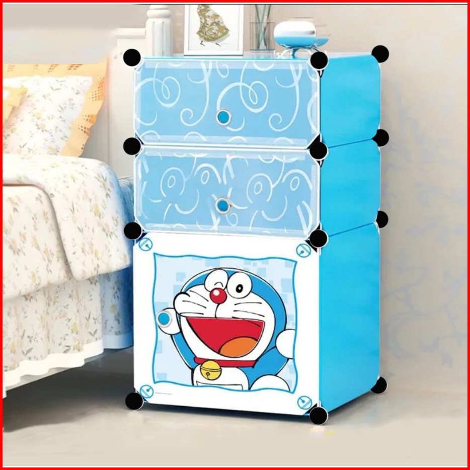 Lemari Plastik Bedside Table Anti Air Rak Buku Susun Anak 3 Pintu Kotak
