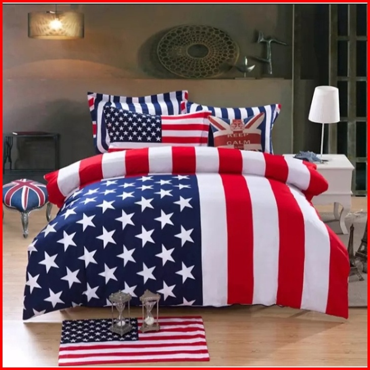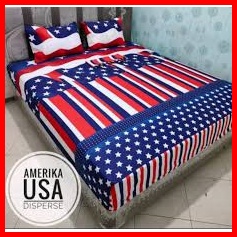 1 Set Seprei Amerika Karakter 2 Sarung Bantal 1 Sarung Guling Sprei Motif Bendera America Terbaru Halus Terlaris Aksesor