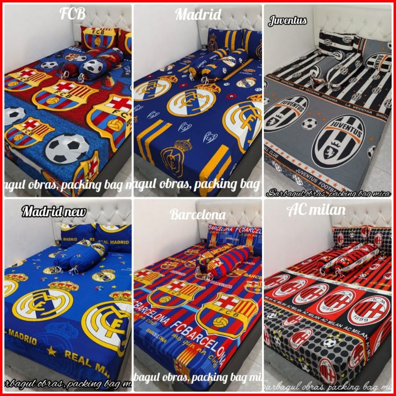 Sprei Karet Sudut Homemade Motif Bola Juventus Manchester Real Madrid Barca