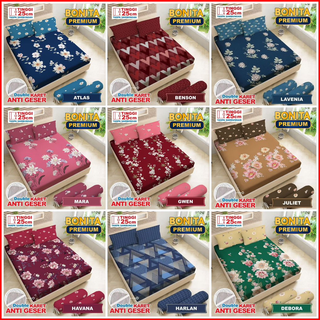 Rvc75 - Bonita Premium Sprei Selip King B4 Tinggi 25cm Uk 180x200x25 Kasur No 1 Seprai Katun Motif