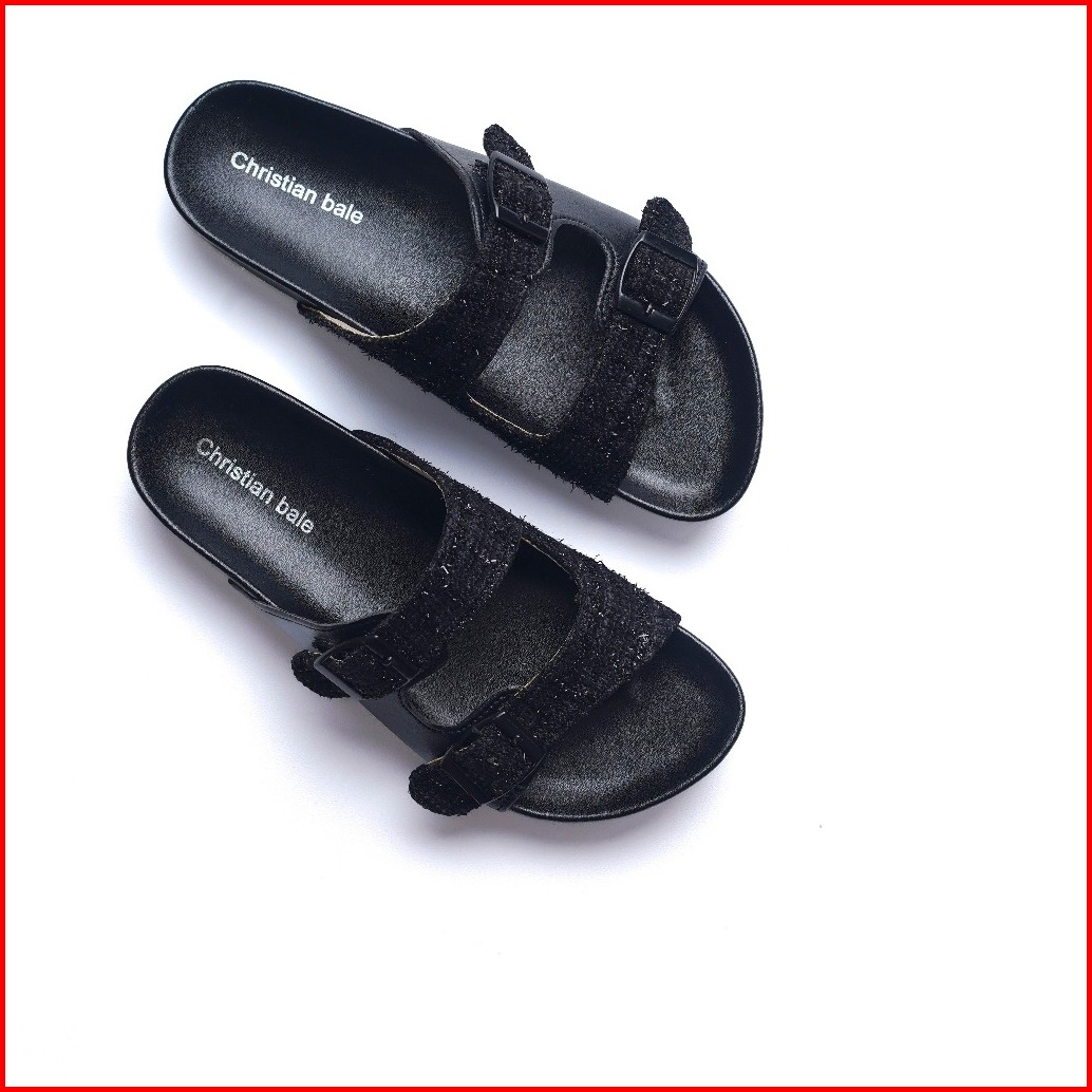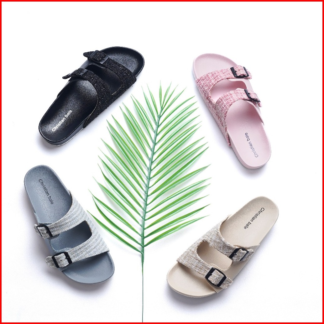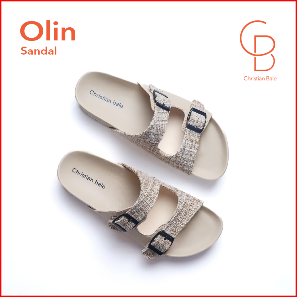 Christian Bale Olin Sandal Wanita Kekinian Sendal Flat Cewek Casual Bahan Canvas Gesper Terbaru