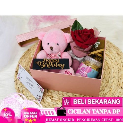 Kado Ulang Tahun Hadiah Anniversary Hampers Ultah Hampers Lebaran - Montes+HBD, Pita Putih /FREE ONGKIR