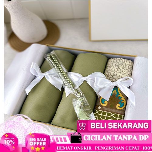 Hampers Mukena Set Sajadah Travel Tasbih Kado Ulang Tahun Kado Wisuda - Green Tea Motif /FREE ONGKIR