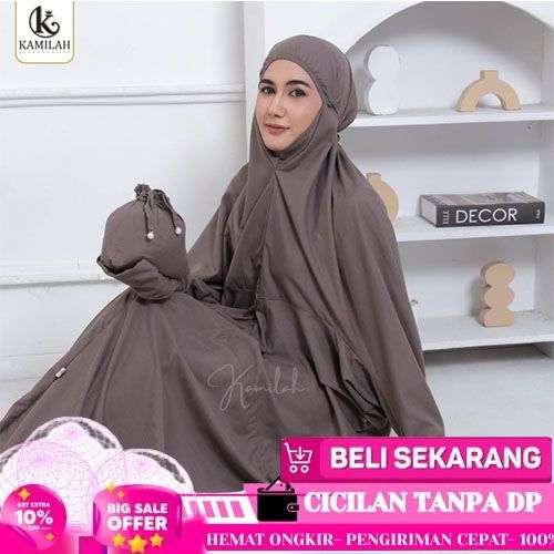 KAMILAH - Mukena Terusan Dewasa Lajuran Polos Katun Premium Traveling - Khaki /FREE ONGKIR