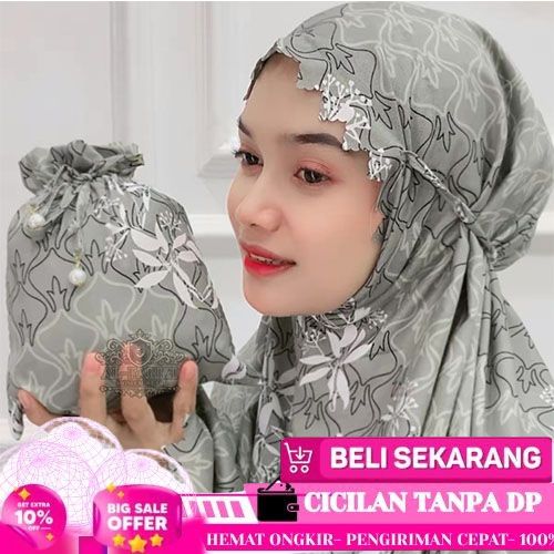 Mukena Katun Motif Laser Cut Atasan Bawahan + Tas Pouch Mini Ukuran Remaja Dewasa - Abu-abu /FREE ONGKIR