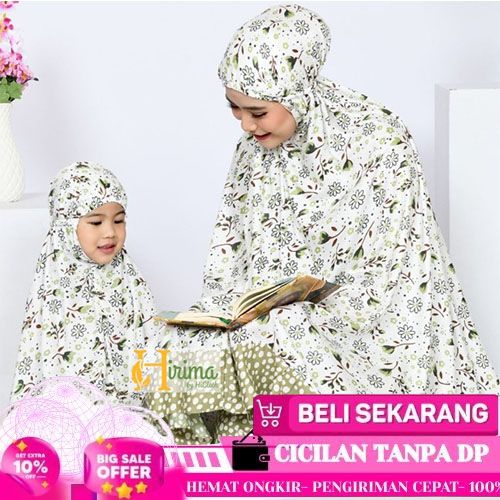 Mukena Anak dan Ibu (bisa couple) Bahan Rayon Adem Cantik - Abu Bunga, balita 1-2thn /FREE ONGKIR