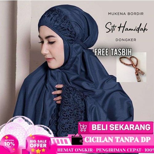Mukena Dewasa Bordir Khadijah [Free Tasbih] Katun Premium Jeon Collection Mewah - Army /FREE ONGKIR