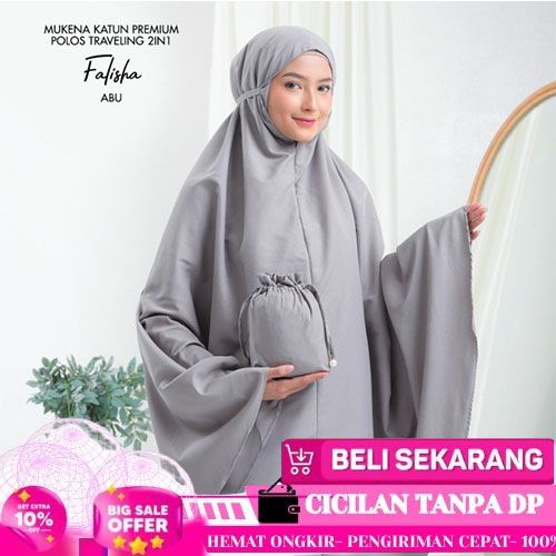 MUKENA DEWASA TRAVELING POLOS FALISHA 2 IN 1 RESLETING KATUN PREMIUM - ABU /FREE ONGKIR