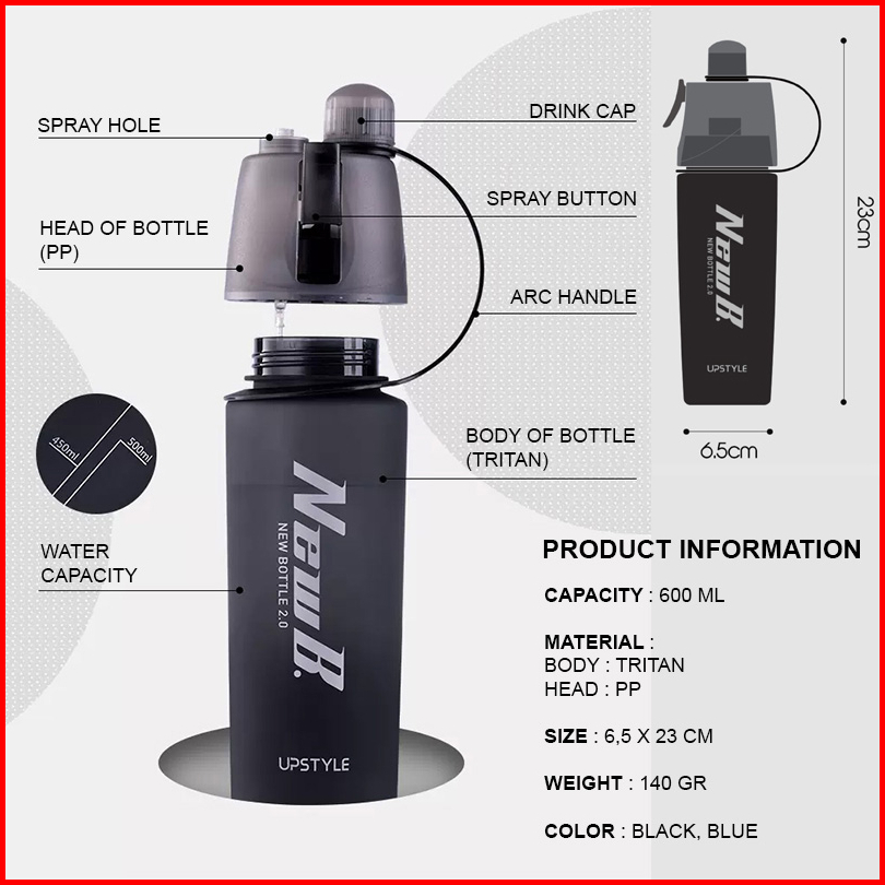 Botol Air Minum 600 Ml Spray Upstyle Tritan Sport Water Bottle