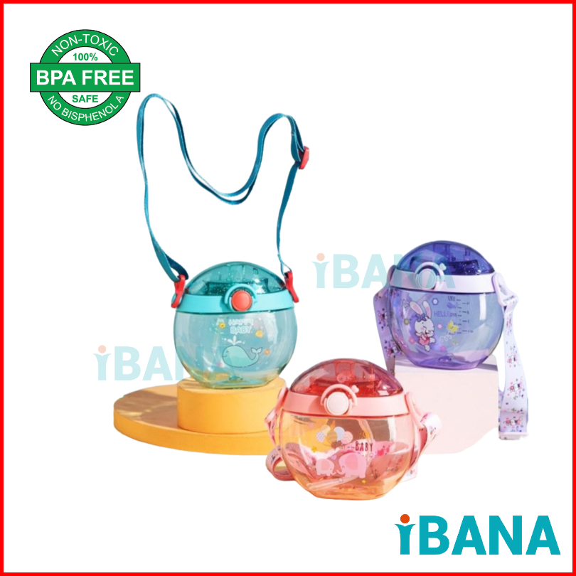 Ibana Hu04 Botol Minum Anak Oval Karakter 420ml Botol Minum Anak Viral Botol Minum Anak Happy Baby Tali