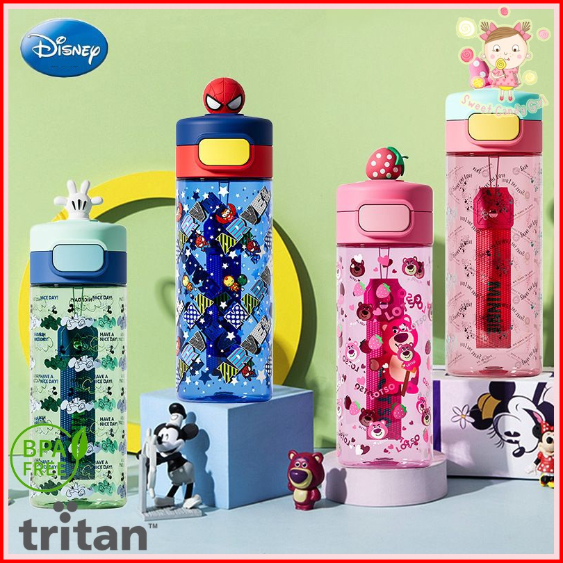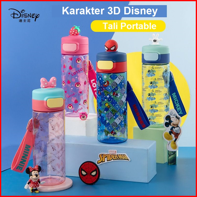 Best Seller Botol Minum Teguk Tritan Karakter 3d Mickey Minnie Marvel Lotso Dengan Tali Portable 530ml